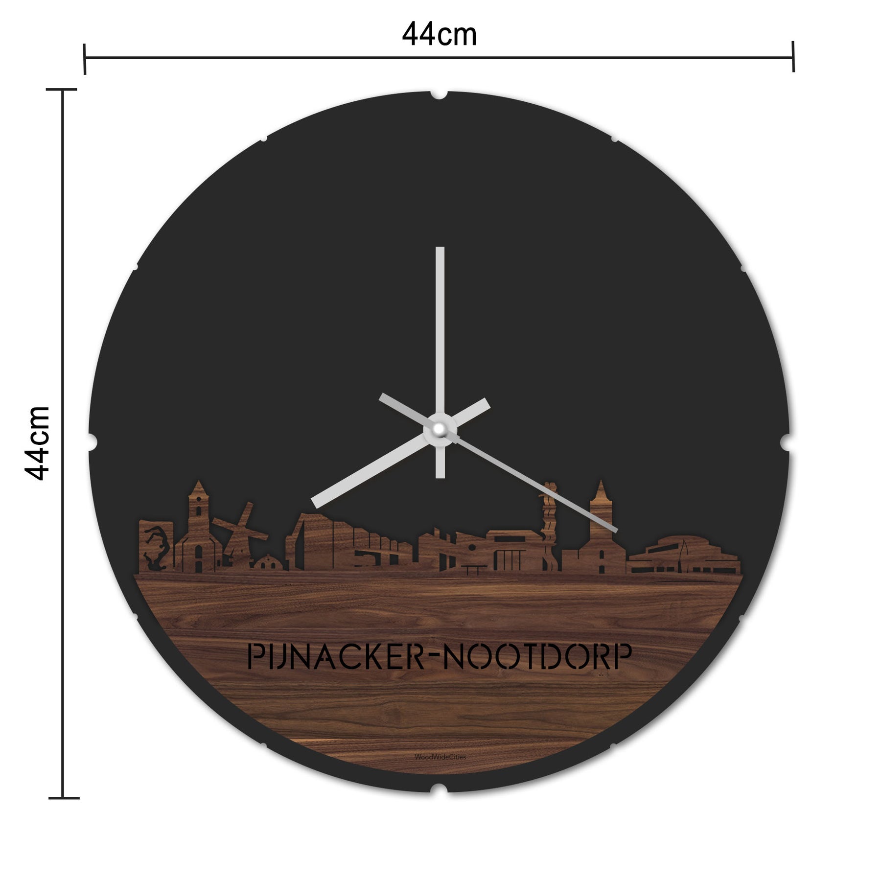 Skyline Klok Rond Pijnacker-Nootdorp Noten houten cadeau decoratie relatiegeschenk van WoodWideCities