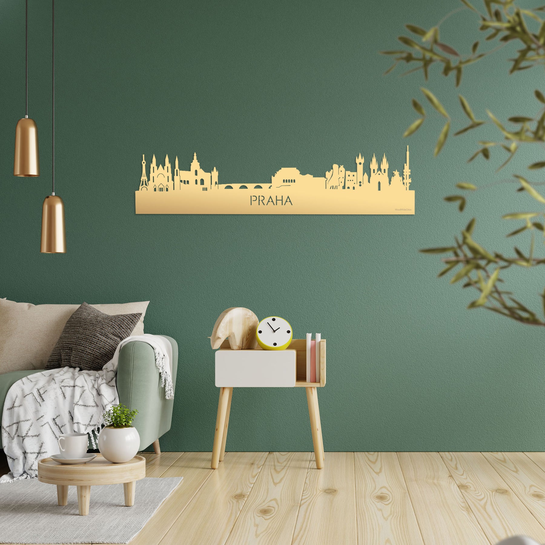 Met deze wanddecoratie van Skyline Praha Goud Metallic aan de muur heb je een echte eyecatcher in huis. Het is een mooie herinnering aan je geboorteplaats, een aandenken van die te gekke stedentrip of de stad waar je jarenlang hebt gestudeerd. Een leuk afscheidscadeau of een bijzonder geschenk voor moeder- of vaderdag en andere mijlpalen zoals het behalen van diploma’s, een spetterend cadeau voor je dochter die gaat studeren in een andere stad of voor een housewarming. Geef je deze skyline van cadeau, dan steel jij gegarandeerd de show!