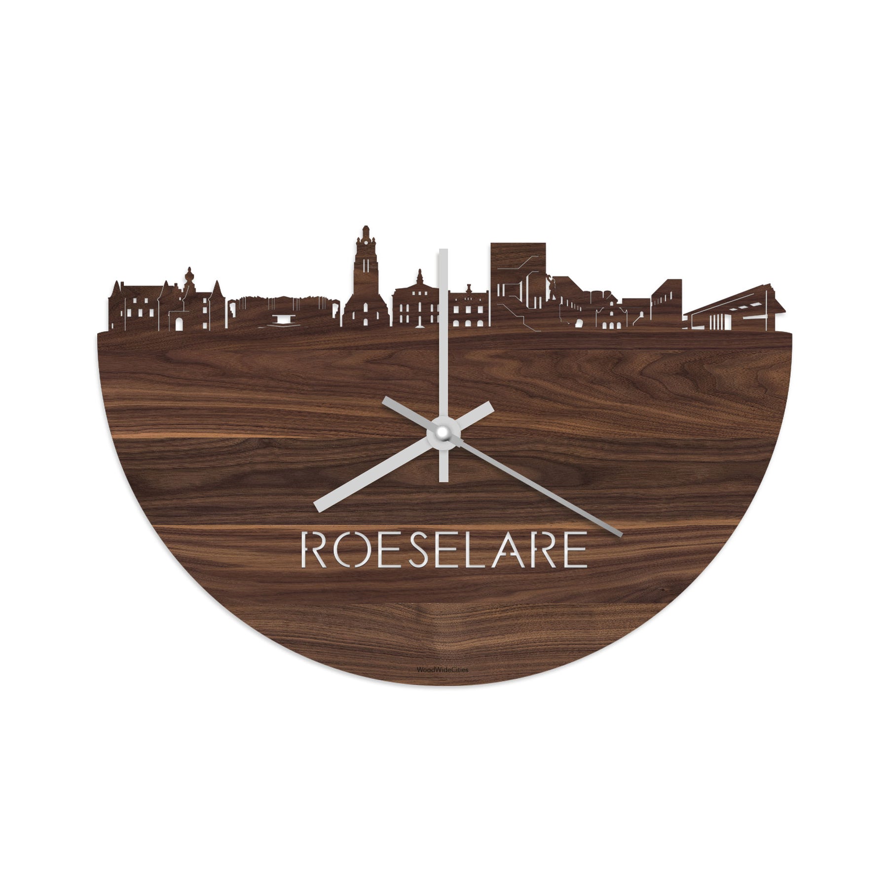 Time flies when you’re having fun! Dat geldt dubbelop als je deze multifunctionele houten Skyline Klok Roeselare Noten in huis haalt. Deze klok met de skyline van Roeselare houdt je bij de tijd, maar neemt je ook mee terug naar de stad waar je bent geboren of waar je hebt gestudeerd. Een mooie herinnering, elke keer als je kijkt hoe laat het is! Of wat dacht je van een afscheidscadeau, een tijdloos geschenk voor moeder- of vaderdag en andere mijlpalen zoals trouwerijen, het behalen van diploma’s en het openen van een nieuw kantoor of bedrijf, een spetterende binnenkomer voor je kind die gaat studeren in een andere stad of een ideaal cadeau voor de housewarming van kennissen en vrienden.
