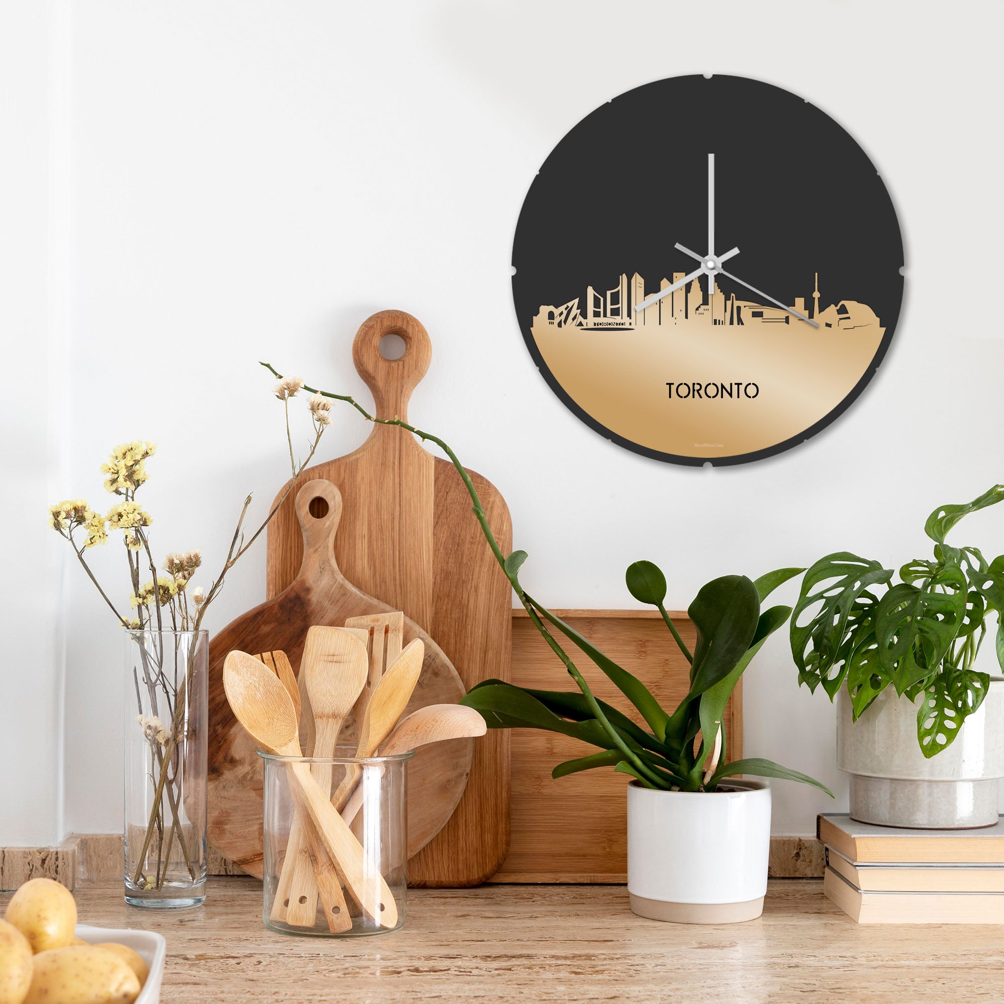 Dat geldt zeker als je deze stoere Skyline Klok Rond Toronto Goud Metallic in huis haalt. Deze skyline klok van Toronto houdt je bij de tijd, maar neemt je ook mee terug naar de stad waar je bent opgegroeid of waar je hebt gestudeerd. Een mooie herinnering, elke keer als je kijkt hoe laat het is! Of wat dacht je van een afscheidscadeau, een tijdloos geschenk voor Moeder- of Vaderdag en andere mijlpalen zoals jubilea, trouwerijen, het behalen van diploma’s, het openen van een nieuw kantoor of gewoon voor jezelf. Een bijzondere verrassing voor je kind die gaat studeren in een andere stad of een ideaal cadeau voor de housewarming van kennissen en vrienden.