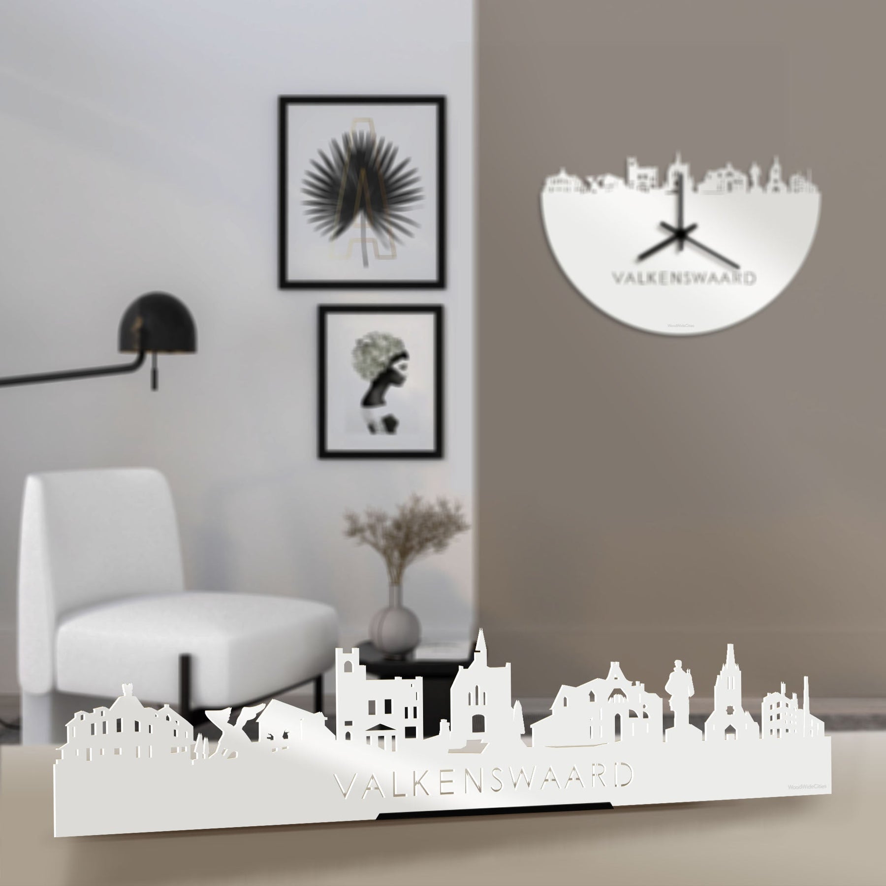 Standing Skyline Valkenswaard Wit Glanzend 40 cm houten cadeau decoratie relatiegeschenk van WoodWideCities
