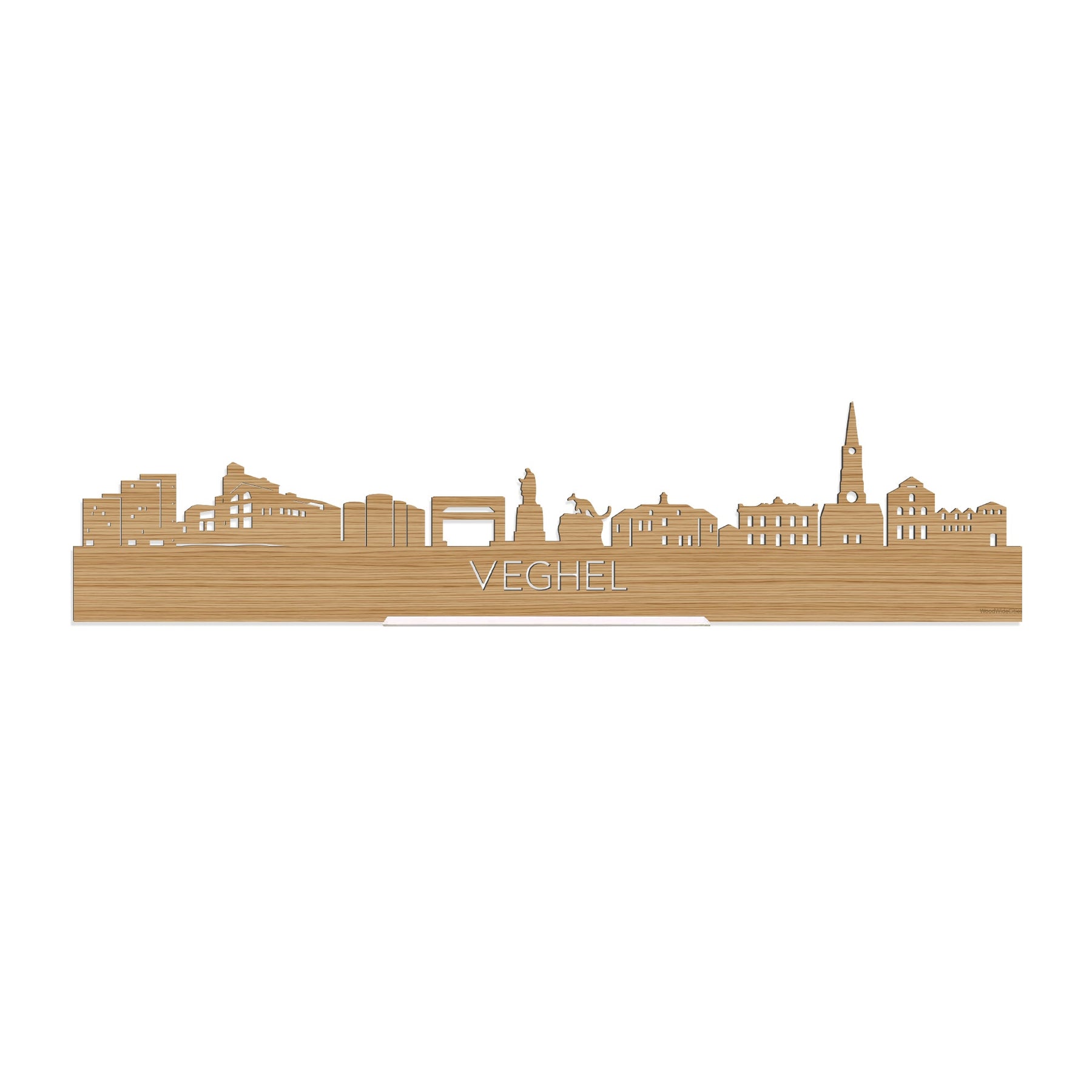 Je herkent ze vast allemaal; de hoogtepunten van deze geliefde plaats: Poort van Veghel, CHV fabriek, Silo’s Veghel, Voormalige spoorbrug, Heilig Hartbeeld, Airborne Monument, Vila Klondike, Oude Raadhuis Veghel, Sint-Lambertuskerk Veghel en Francis-canessenklooster Veghel. De skyline is gemaakt in samenwerking met Veghel ondernemers en het silhouet komt uit het creatieve brein van een architect, dus alle verhoudingen kloppen.