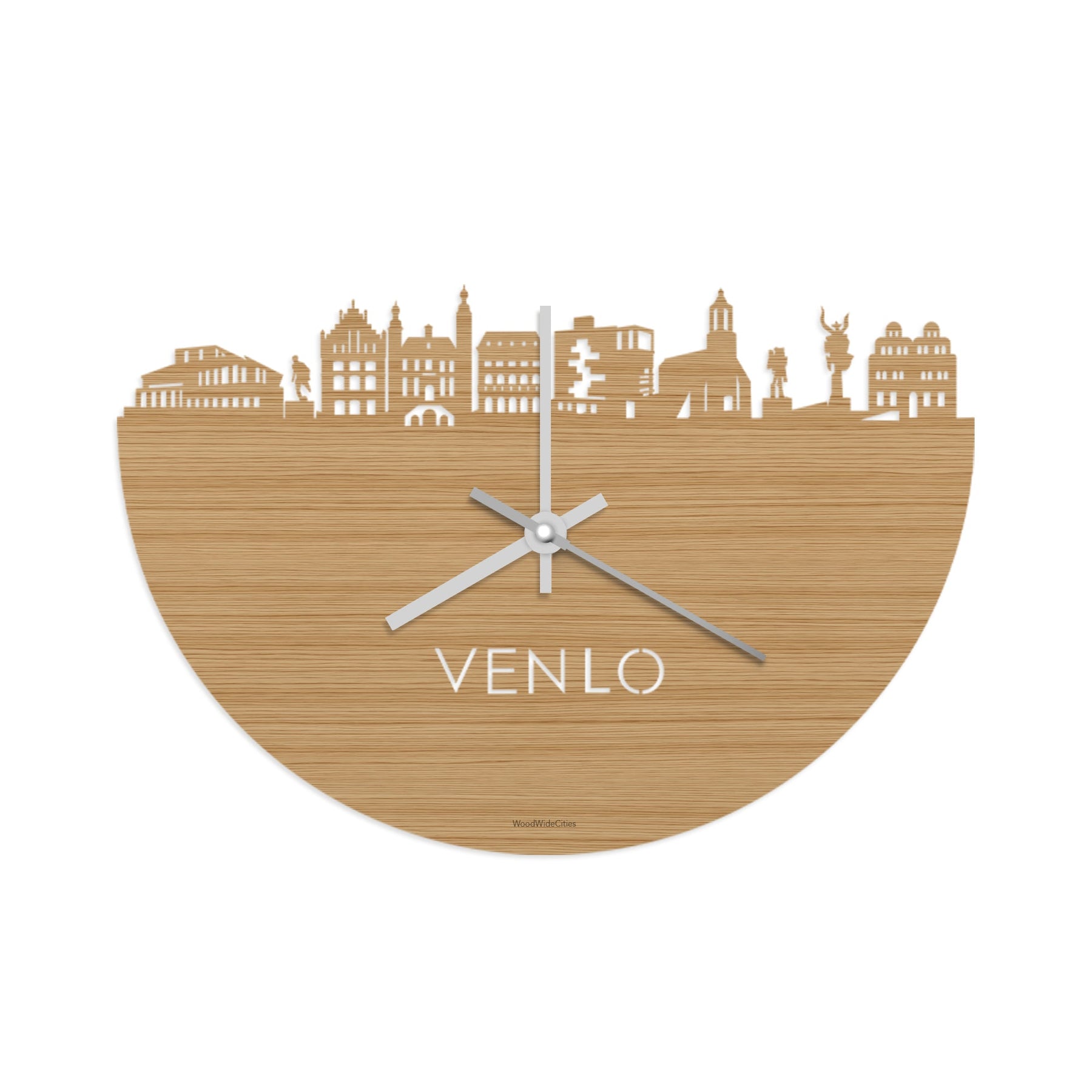 Time flies when you’re having fun! Dat geldt dubbelop als je deze multifunctionele houten wandklok van WoodWideCities in huis haalt. Deze klok met afbeelding van de skyline van Venlo houdt je bij de tijd, maar neemt je ook mee terug naar de stad waar je bent geboren of waar je hebt gestudeerd. Een mooie herinnering, elke keer als je kijkt hoe laat het is! Of wat dacht je van een afscheidscadeau, een tijdloos geschenk voor moeder- of vaderdag en andere mijlpalen zoals trouwerijen, het behalen van diploma’s en het openen van een nieuw kantoor of bedrijf, een spetterende binnenkomer voor je kind die gaat studeren in een andere stad of een ideaal cadeau voor de housewarming van kennissen en vrienden.