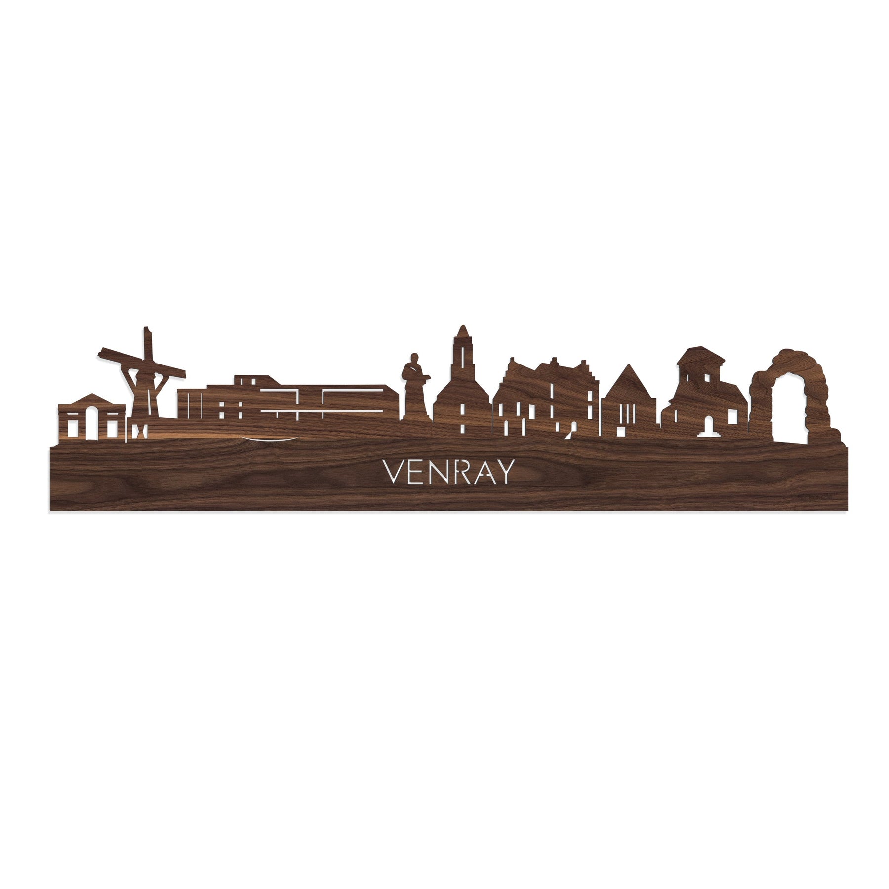 Je herkent ze vast allemaal; de hoogtepunten van deze geliefde plaats: Venray War Cemetery, De Sint-Petrus of Gitzelsmolen, Schouwburg Venray met fontein, Godefridus Henschenius, Petrus' banden kerk Venray, Oude raadhuis Venray, Paterskerk Venray, Oude Postkantoor Venray en Poort van gelijkheid . De skyline is gemaakt in samenwerking met Venray ondernemers en het silhouet komt uit het creatieve brein van een architect, dus alle verhoudingen kloppen.