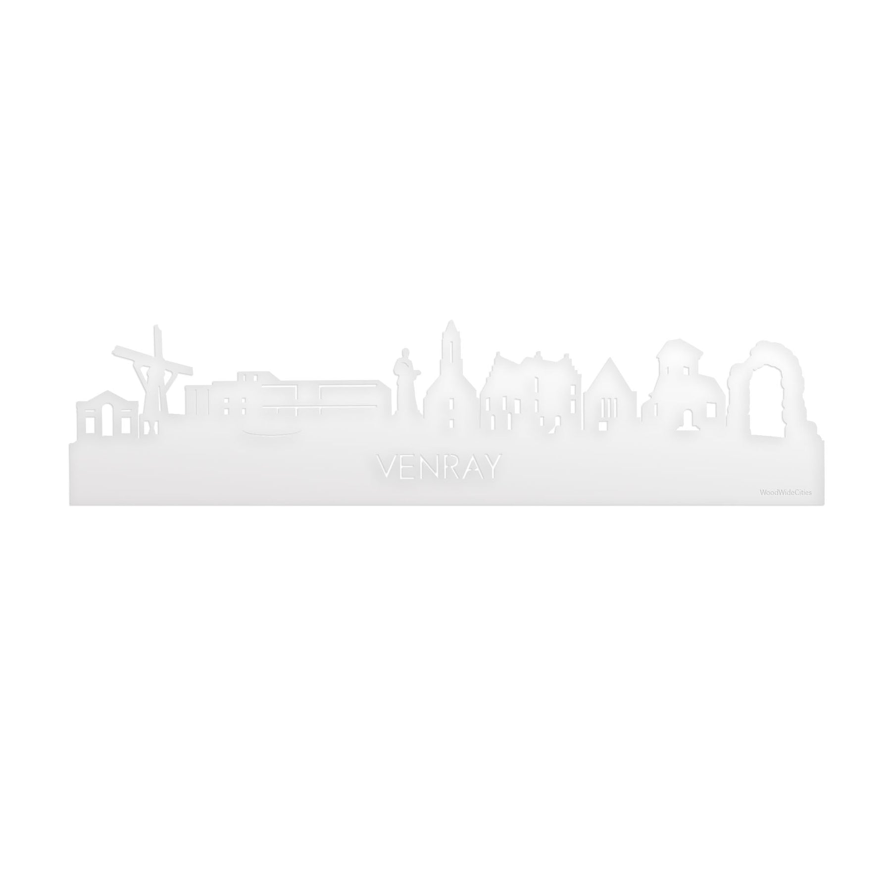 Skyline Venray Wit Glanzend houten cadeau decoratie relatiegeschenk van WoodWideCities