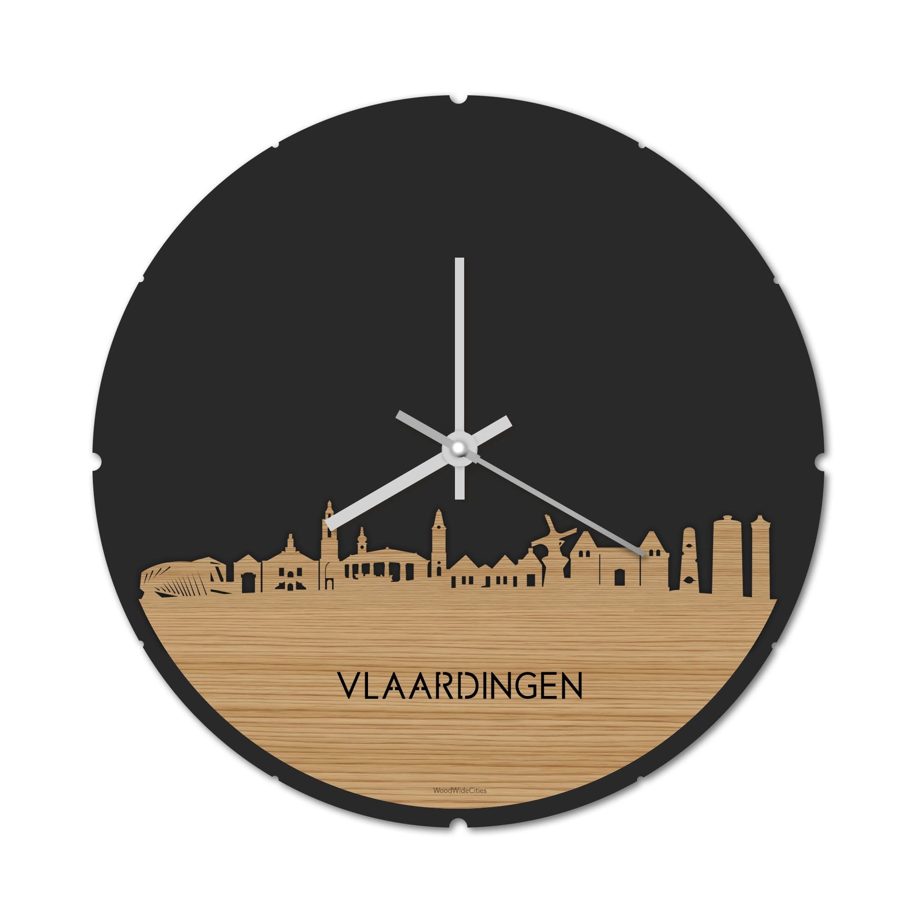 Skyline Klok Rond Vlaardingen Bamboe houten cadeau decoratie relatiegeschenk van WoodWideCities