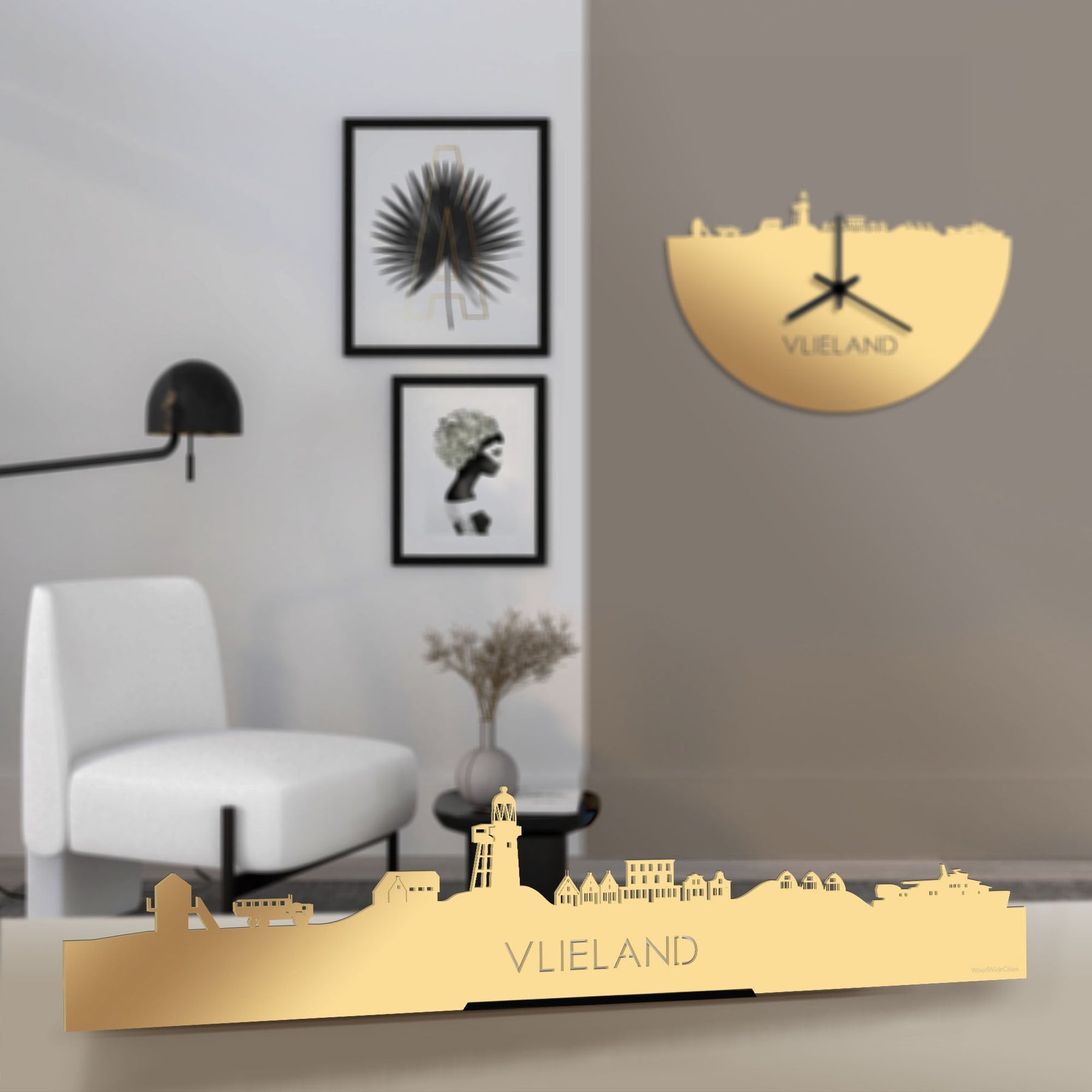 Standing Skyline Vlieland Goud Metallic 40 cm houten cadeau decoratie relatiegeschenk van WoodWideCities