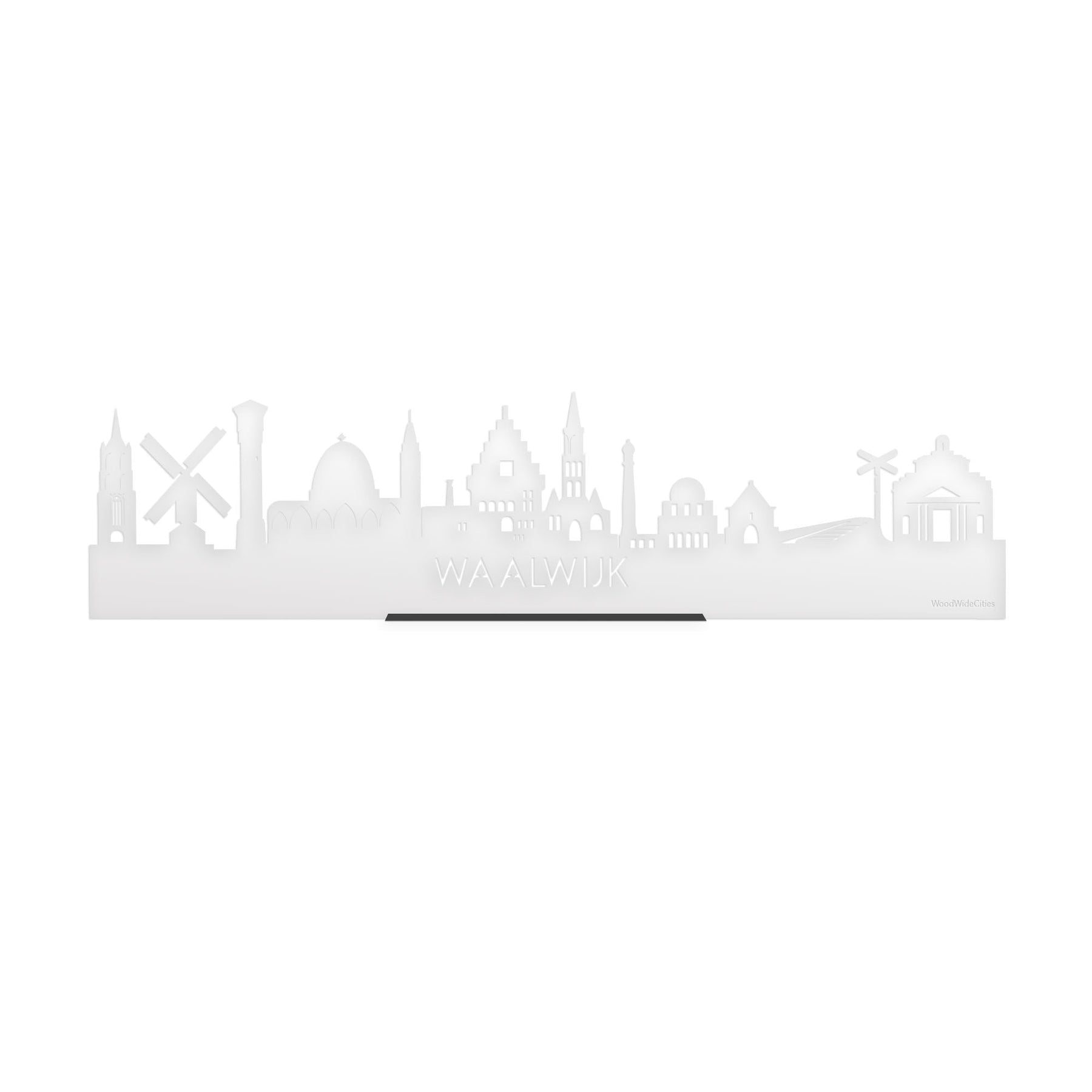 Je herkent ze vast allemaal, de hoogtepunten van deze mooie plaats. De skyline is gemaakt in samenwerking met locals uit Waalwijk. Je ziet de Hervormde kerk Sprang, Molen Sprang-Capelle, Watertoren, Sint Jan, Oude Raadhuis, Sint Clemenskerk, Moskee, Maria Kapel, Halve Zool spoor en de Bartholomeuskerk Waspik.