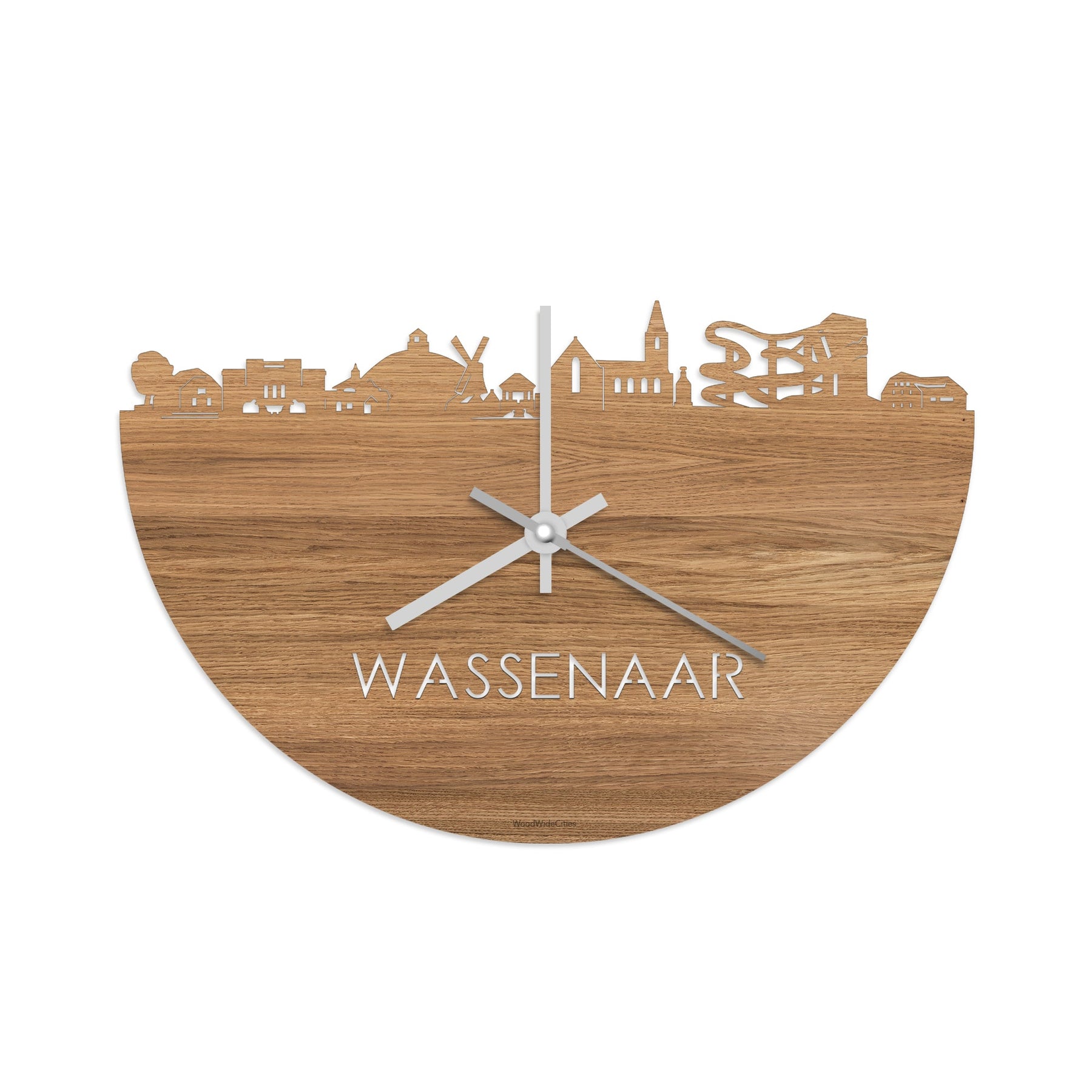 Time flies when you’re having fun! Dat geldt dubbelop als je deze multifunctionele houten Skyline Klok Wassenaar Eiken in huis haalt. Deze klok met de skyline van Wassenaar houdt je bij de tijd, maar neemt je ook mee terug naar de stad waar je bent geboren of waar je hebt gestudeerd. Een mooie herinnering, elke keer als je kijkt hoe laat het is! Of wat dacht je van een afscheidscadeau, een tijdloos geschenk voor moeder- of vaderdag en andere mijlpalen zoals trouwerijen, het behalen van diploma’s en het openen van een nieuw kantoor of bedrijf, een spetterende binnenkomer voor je kind die gaat studeren in een andere stad of een ideaal cadeau voor de housewarming van kennissen en vrienden.