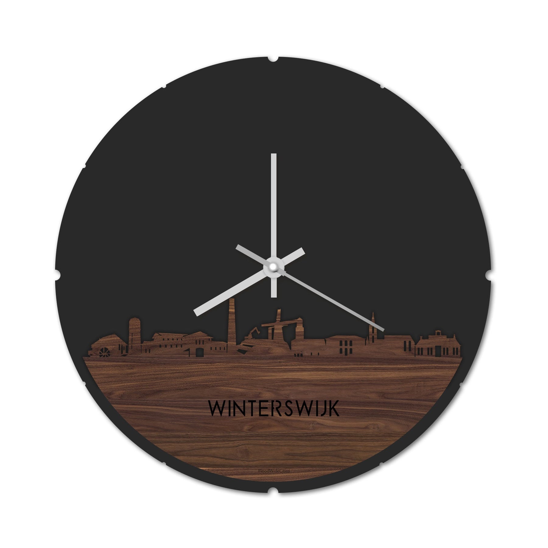 Skyline Klok Rond Winterswijk Black Zwart houten cadeau decoratie relatiegeschenk van WoodWideCities