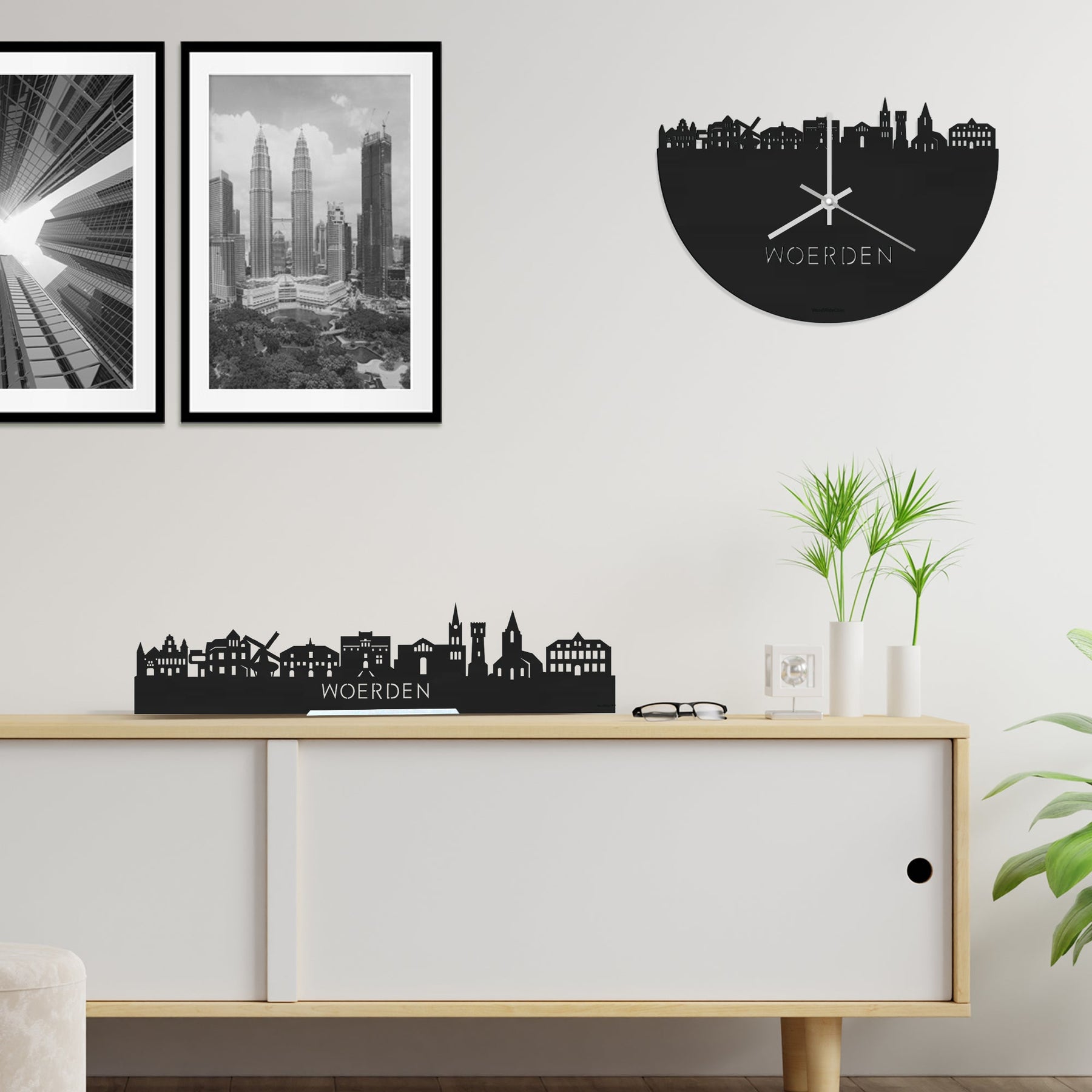 Skyline Klok Woerden Black Zwart houten cadeau decoratie relatiegeschenk van WoodWideCities