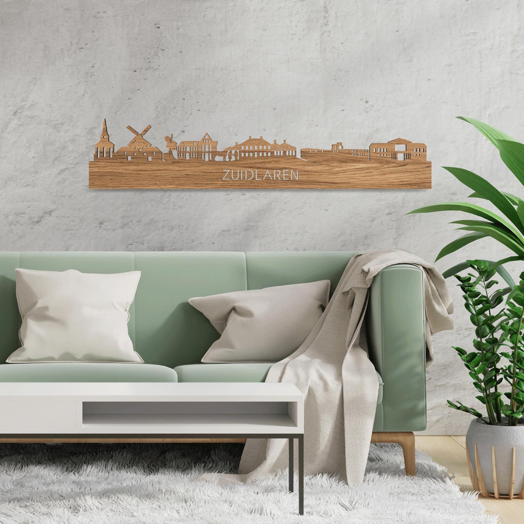 Met deze wanddecoratie van Zuidlaren aan de muur heb je een echte eyecatcher in huis. Het is een mooie herinnering aan je geboorteplaats, een aandenken van die te gekke stedentrip of de stad waar je jarenlang hebt gestudeerd. Een leuk afscheidscadeau of een bijzonder geschenk voor moeder- of vaderdag en andere mijlpalen zoals het behalen van diploma’s, een spetterend cadeau voor je dochter die gaat studeren in een andere stad of voor een housewarming. Geef je deze skyline van Zuidlaren cadeau, dan steel jij gegarandeerd de show!