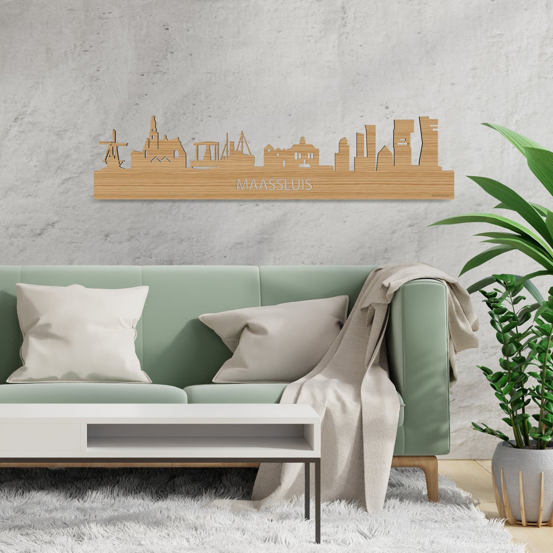 De skyline van Maassluis is verkrijgbaar in verschillende soorten hout: zwart MDF, bamboe, eiken, noten en palissander. De houtsoorten zijn duurzaam, ecologisch en gekeurd.