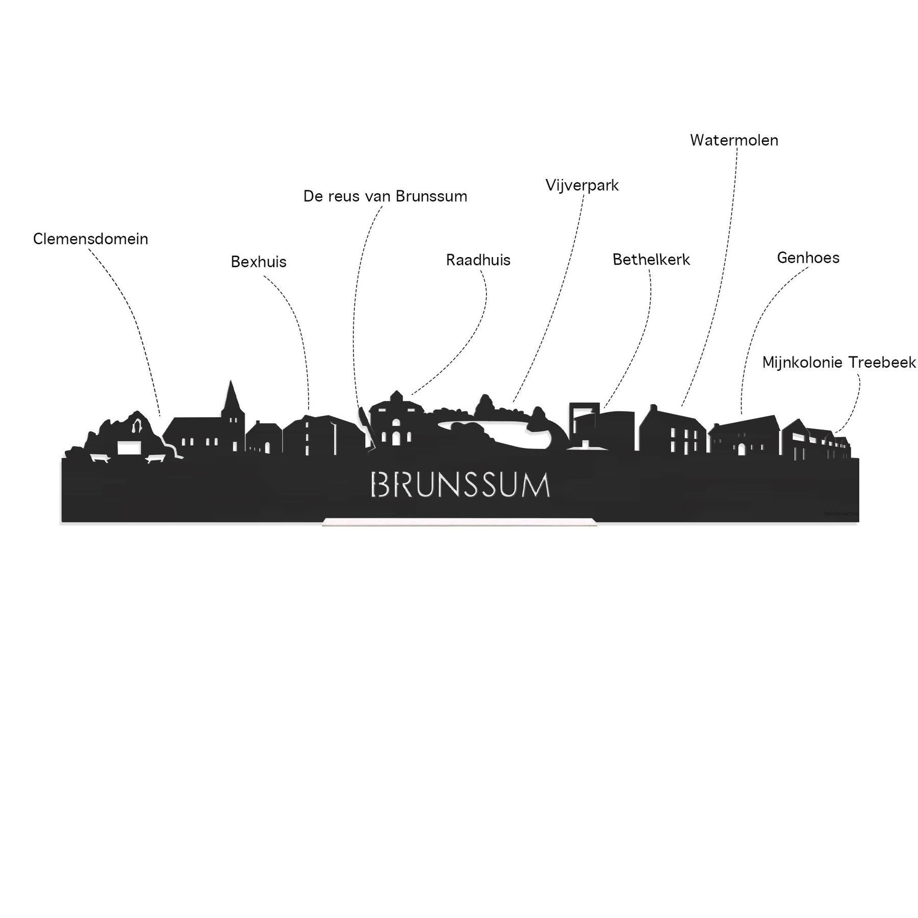 Je herkent ze vast allemaal; de hoogtepunten van deze geliefde plaats: Clemensdomein, Bexhuis, De reus van Brunssum, Raadhuis, Vijverpark, Bethelkerk, Watermolen, Genhoes, Mijnkolonie Treebeek. De skyline is gemaakt in samenwerking met inwoners uit Brunssum en het silhouet komt uit het creatieve brein van onze eigen kunstenares. Met liefde gemaakt!