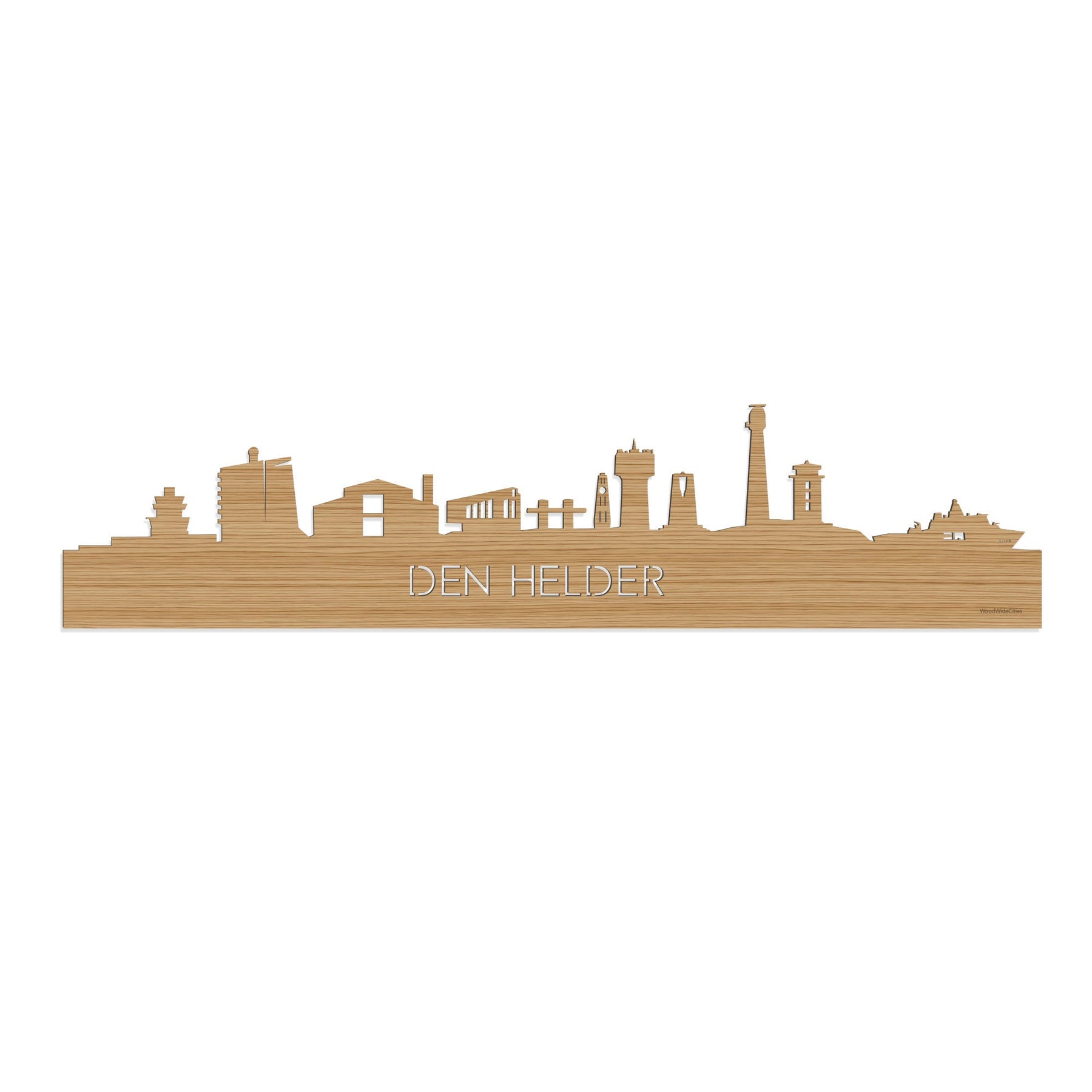 De skyline van Den Helder is verkrijgbaar in verschillende soorten hout: zwart MDF, bamboe, eiken, noten en palissander. De houtsoorten zijn duurzaam, ecologisch en gekeurd.
