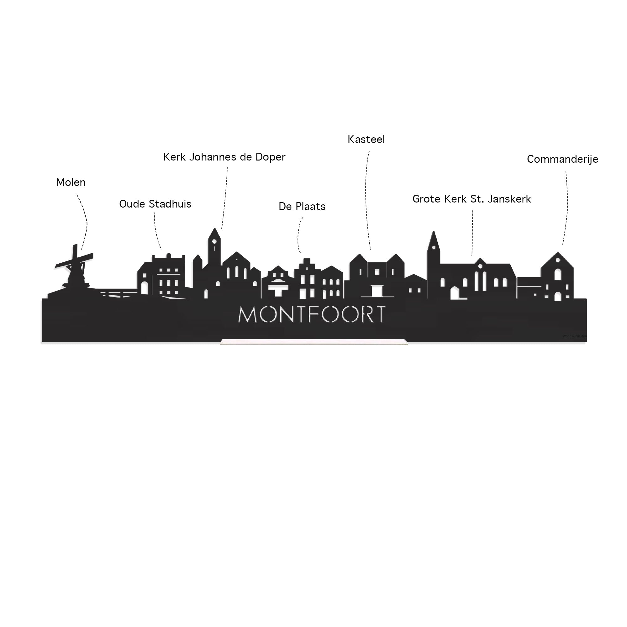 Je herkent ze vast allemaal; de hoogtepunten van deze geliefde plaats: Molen, Oude Stadhuis, Kerk Johannes de Doper, De Plaats, Kasteel, Grote kerk St Janskerk, Commanderije. De skyline is gemaakt in samenwerking met inwoners uit Montfoort en het silhouet komt uit het creatieve brein van onze eigen kunstenares. Met liefde gemaakt!
