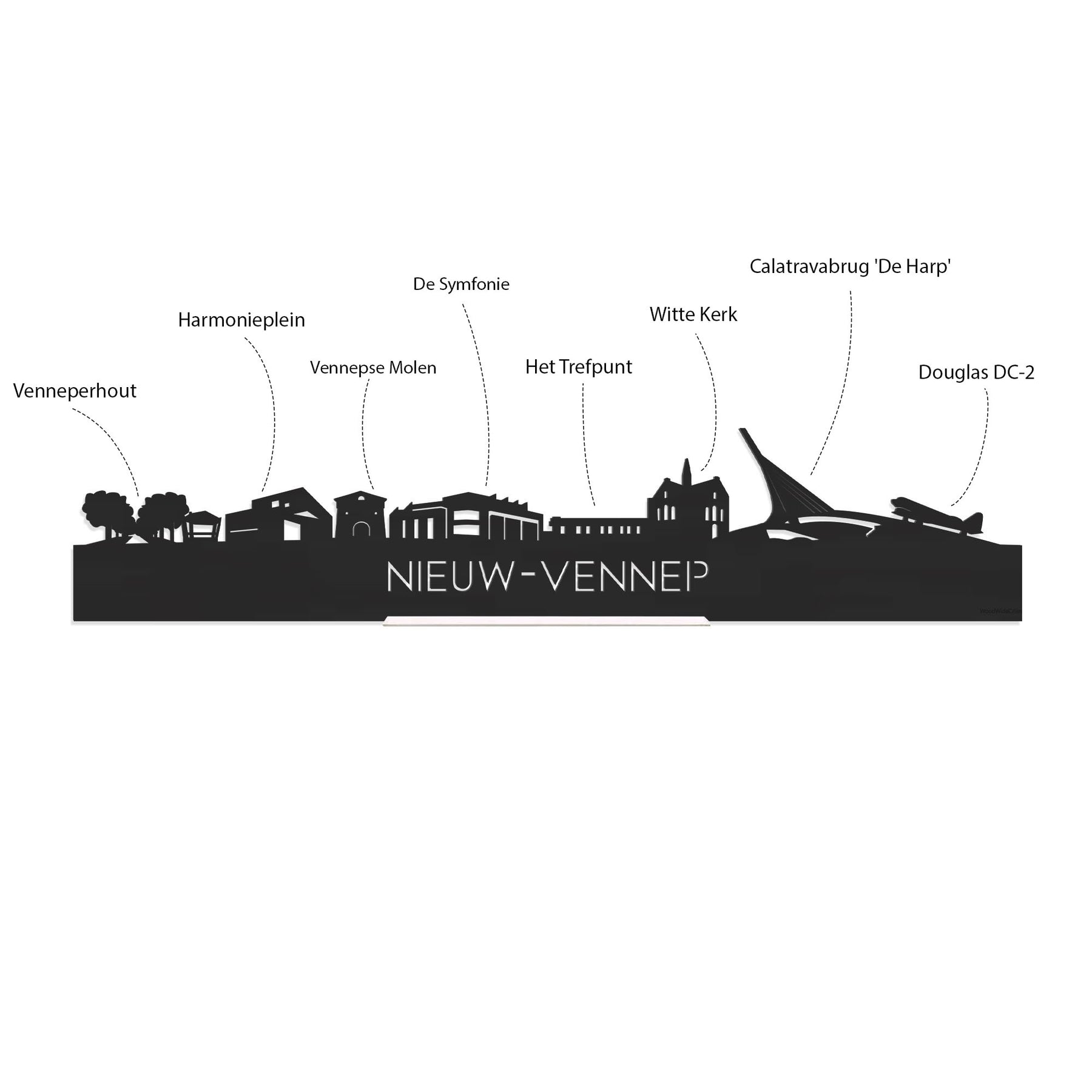 Je herkent ze vast allemaal; de hoogtepunten van deze geliefde plaats: Venneperhout, Harmonieplein, Vennepse Molen, De Symfonie, Het Trefpunt, Witte Kerk Nieuw-Vennep, Calatravabrug 'De Harp', no specific location, Douglas DC-2 . De skyline is gemaakt in samenwerking met inwoners uit Nieuw-Vennep en het silhouet komt uit het creatieve brein van onze eigen kunstenares. Met liefde gemaakt!