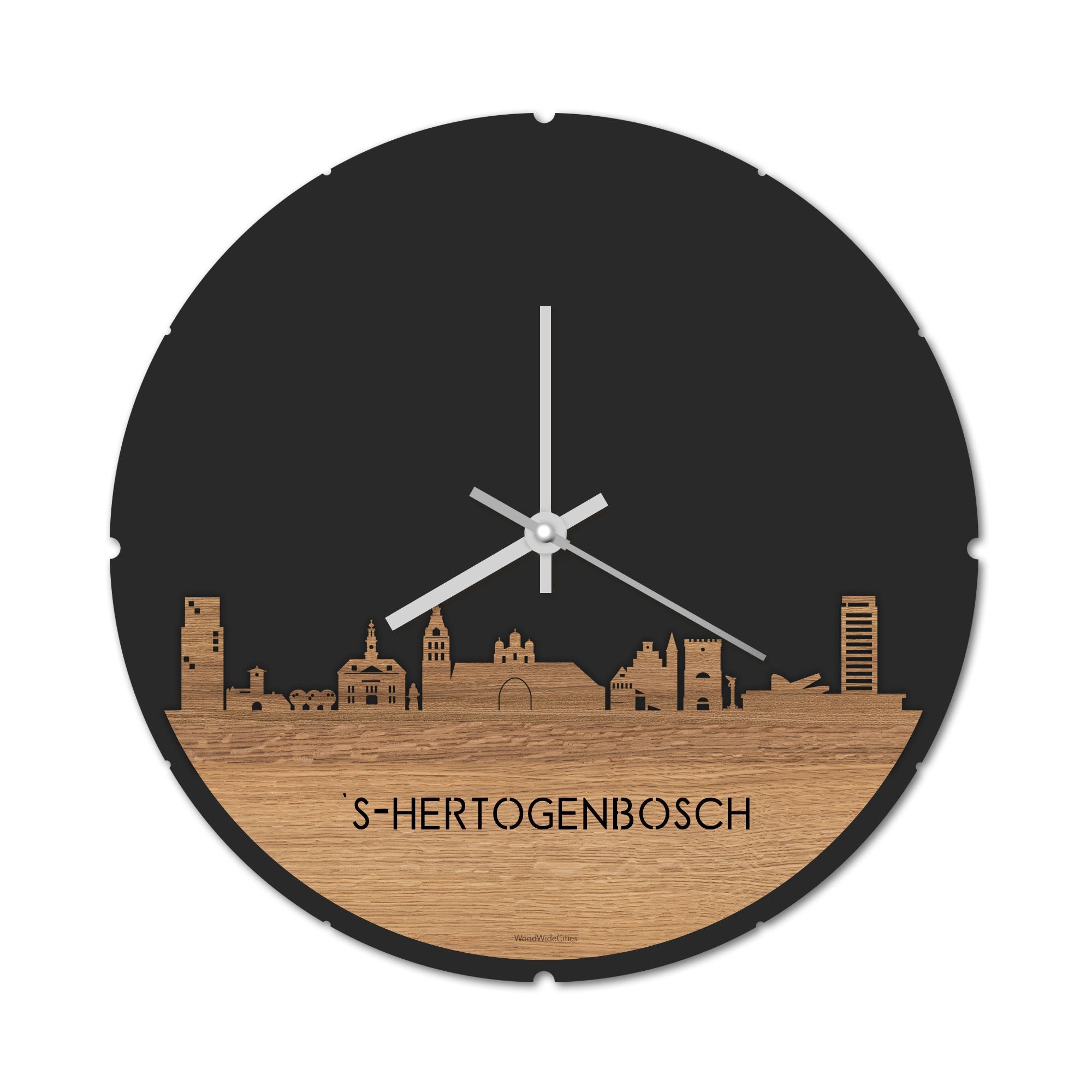 Skyline Klok Rond Den Bosch Eiken houten cadeau decoratie relatiegeschenk van WoodWideCities