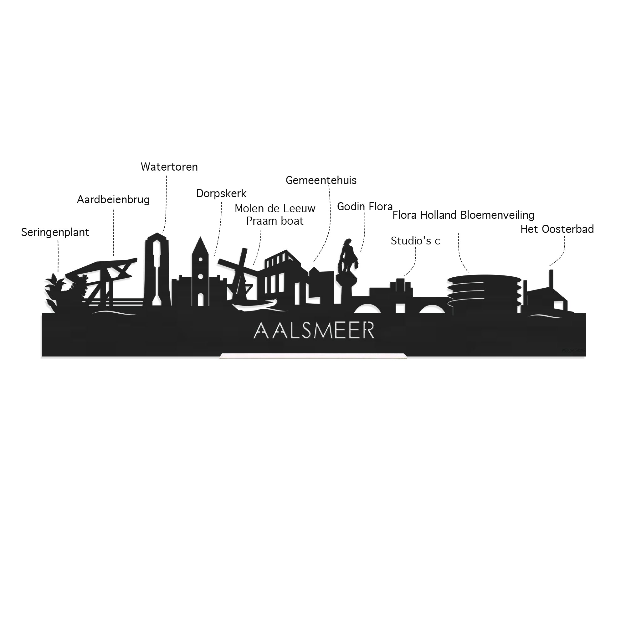 Je herkent ze vast allemaal, de hoogtepunten van deze mooie plaats. De skyline is gemaakt in samenwerking met locals uit Aalsmeer. Je ziet Seringenplant, Aardbeienbrug, Watertoren Aalsmeer, Dorpskerk Aalsmeer, Molen de Leeuw, Praam boot, Gemeentehuis Aalsmeer, Godin Flora, Studio’s Aalsmeer, Flora Holland Bloemenveiling en het Oosterbad.