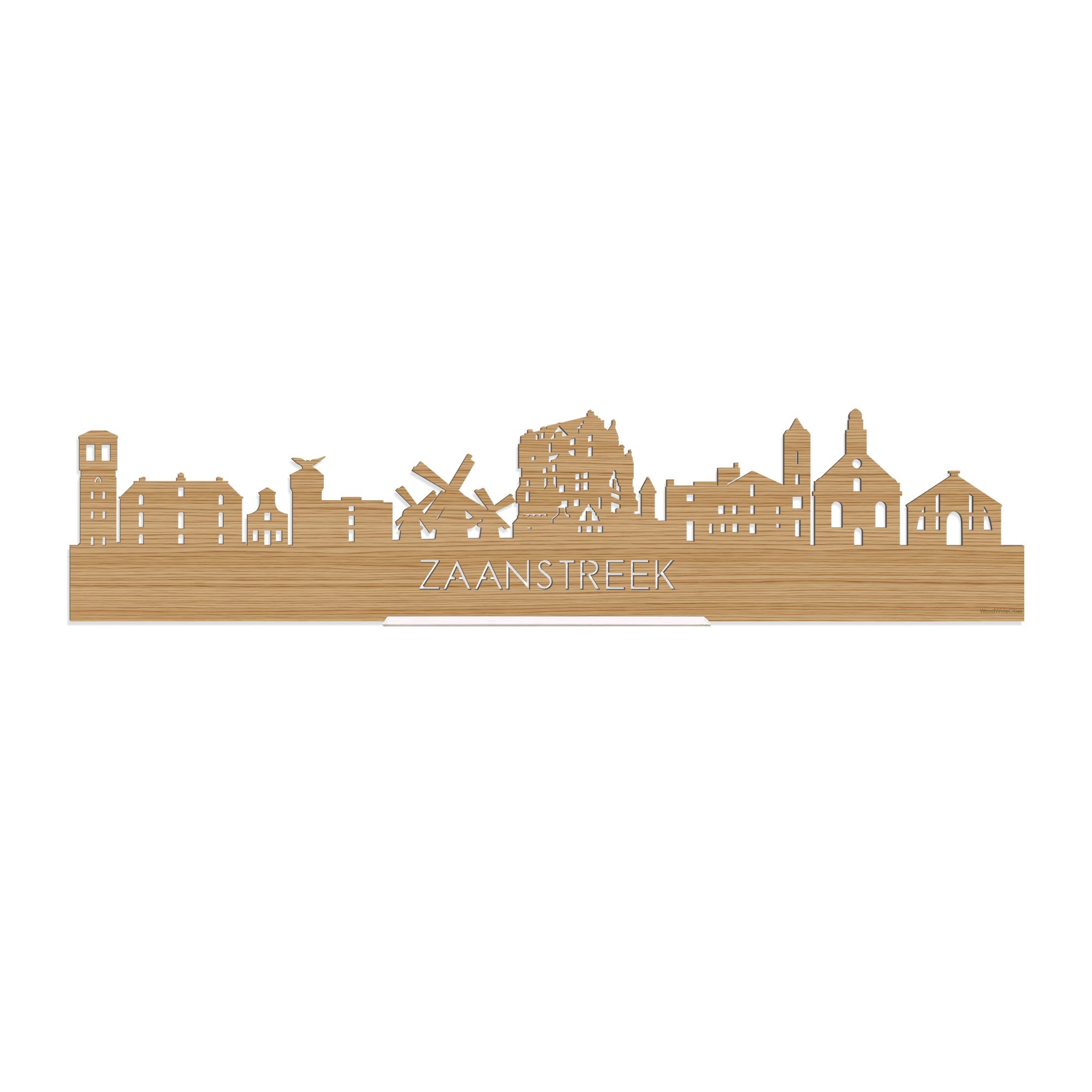 The skyline of Zaanstreek is available in different types of wood: black MDF, oak, bamboo, walnut and rosewood. The types of wood are sustainable, ecological and approved. That's important to us! No harmful substances are released when producing wooden decorations, wood lasts longer and it is biodegradable. In addition, the wooden finish is different for every skyline. That makes your skyline unique!