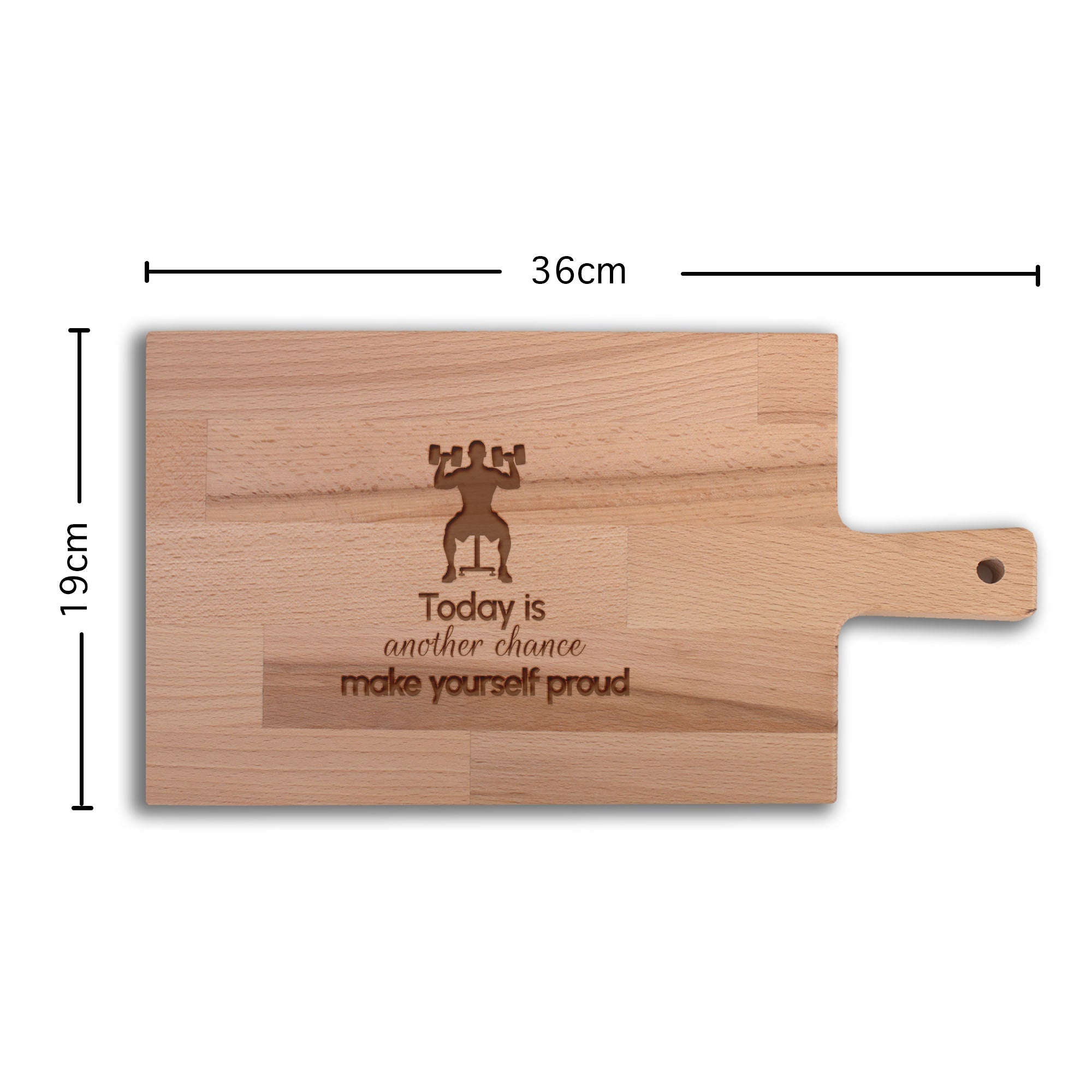 Deze sport serveerplank is niet alleen mooi en duurzaam, maar ook handgemaakt in Nederland. Op zoek naar een cadeau voor een gewichtheffen (man) liefhebber? Dan is deze serveerplank met een prachtig gewichtheffen (man) illustratie en tekst Today Is Another Chance Make Yourself Proud gravure, het perfecte cadeau!