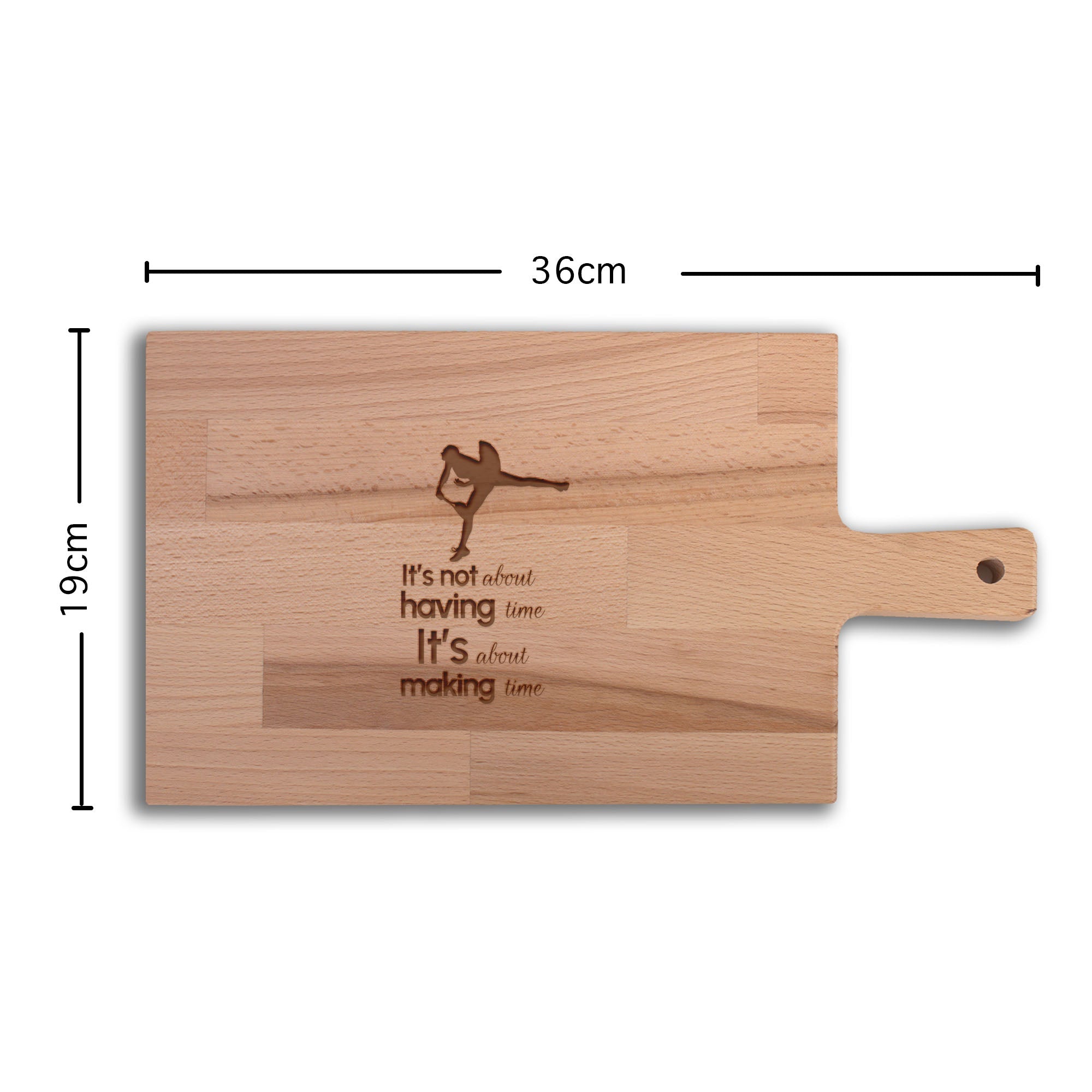 Deze sport serveerplank is niet alleen mooi en duurzaam, maar ook handgemaakt in Nederland. Op zoek naar een cadeau voor een tennis (vrouw) liefhebber? Dan is deze serveerplank met een prachtig tennis (vrouw) illustratie en tekst It’s Not About Having Time It’s About Making Time gravure, het perfecte cadeau!