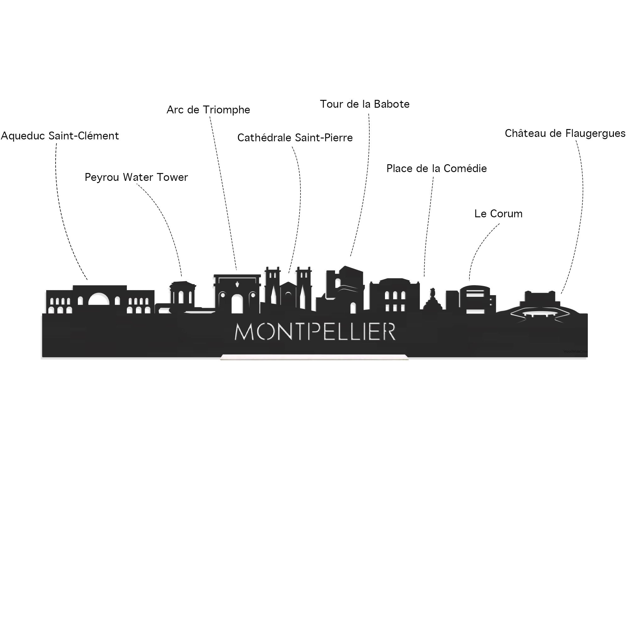 Je herkent ze vast allemaal; de hoogtepunten van deze geliefde plaats: Aqueduc Saint-Clément, Peyrou Water Tower, Arc de Triomphe, Cathédrale Saint-Pierre, Tour de la Babote, Place de la Comédie, Le Corum, Château de Flaugergues . De skyline is gemaakt in samenwerking met inwoners uit Montpellier en het silhouet komt uit het creatieve brein van onze eigen kunstenares. Met liefde gemaakt!