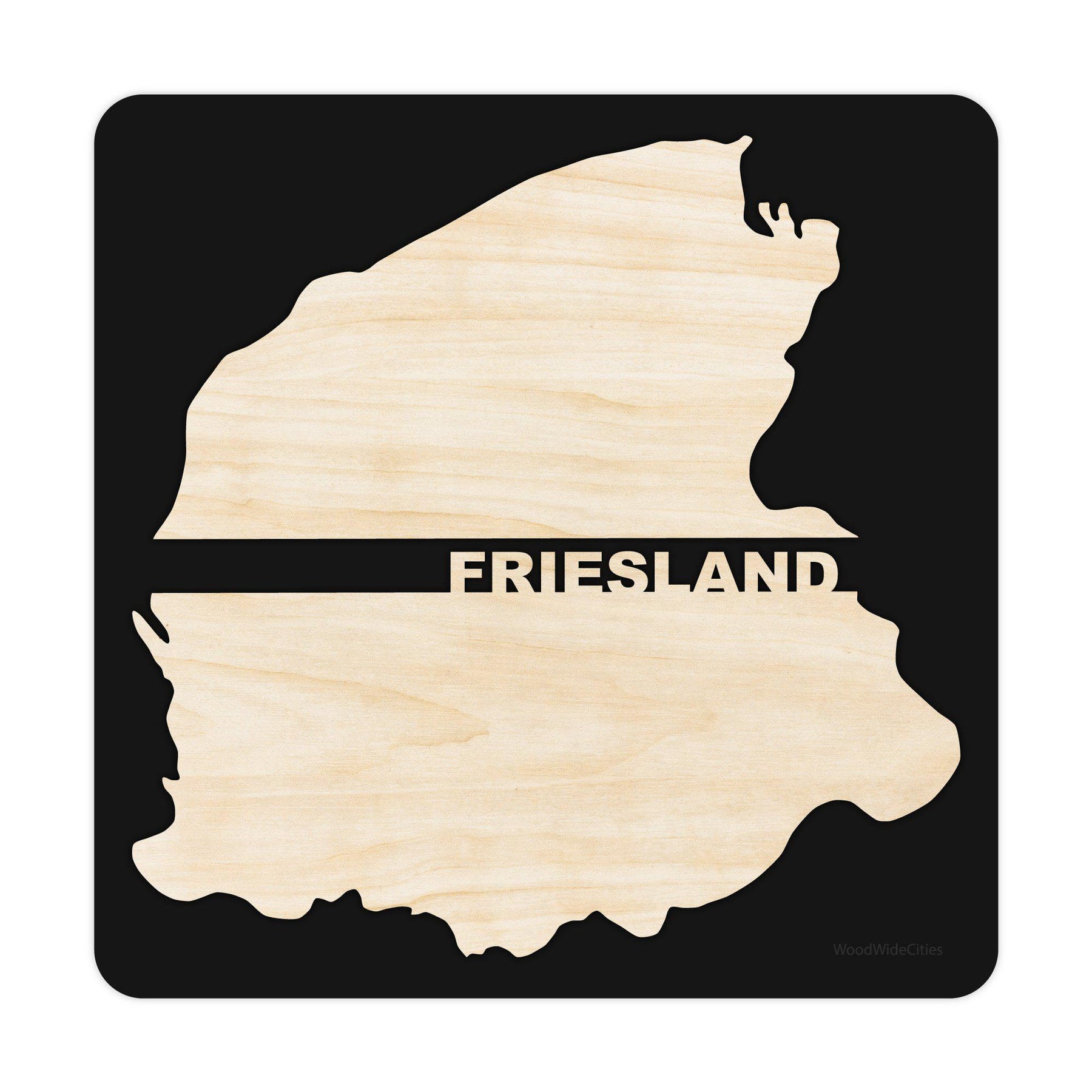 The Province of Friesland wall decoration is made in the Netherlands from certified and sustainably produced wood. The back is made of black MDF wood and the provincial cutout is made of beautiful MDF poplar 4 mm (beige/cream color).