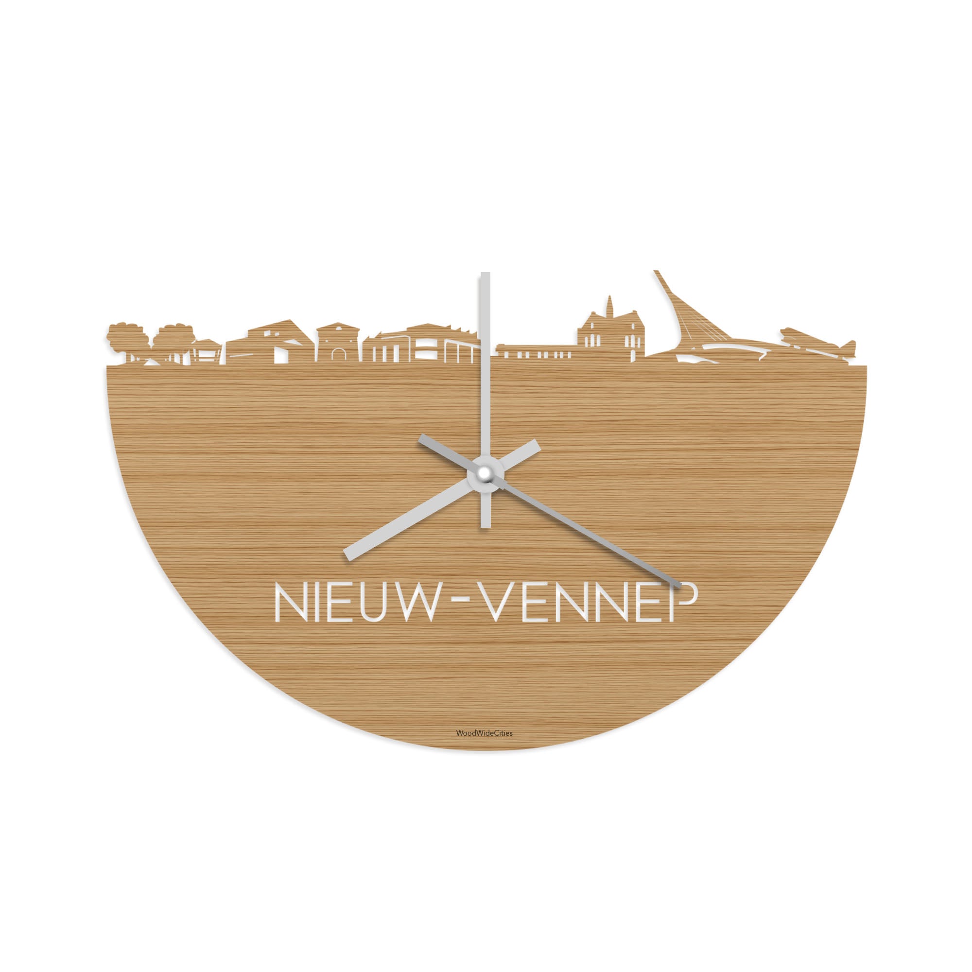 De Skyline Klok Nieuw-Vennep Bamboe kan op verschillende manieren persoonlijk gemaakt worden. In het vakje "Graveren en personalisatie" (staat boven de winkelwagen knop, klik erop en de opties worden zichtbaar) kun je zien welke opties er voor dit product beschikbaar zijn. We leggen het je uit.