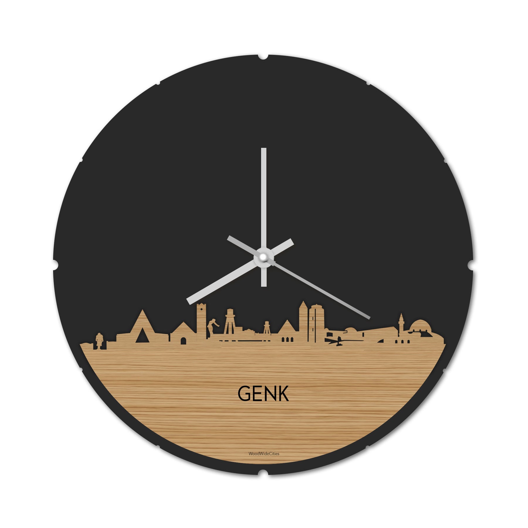 Skyline Klok Rond Genk Bamboe houten cadeau decoratie relatiegeschenk van WoodWideCities