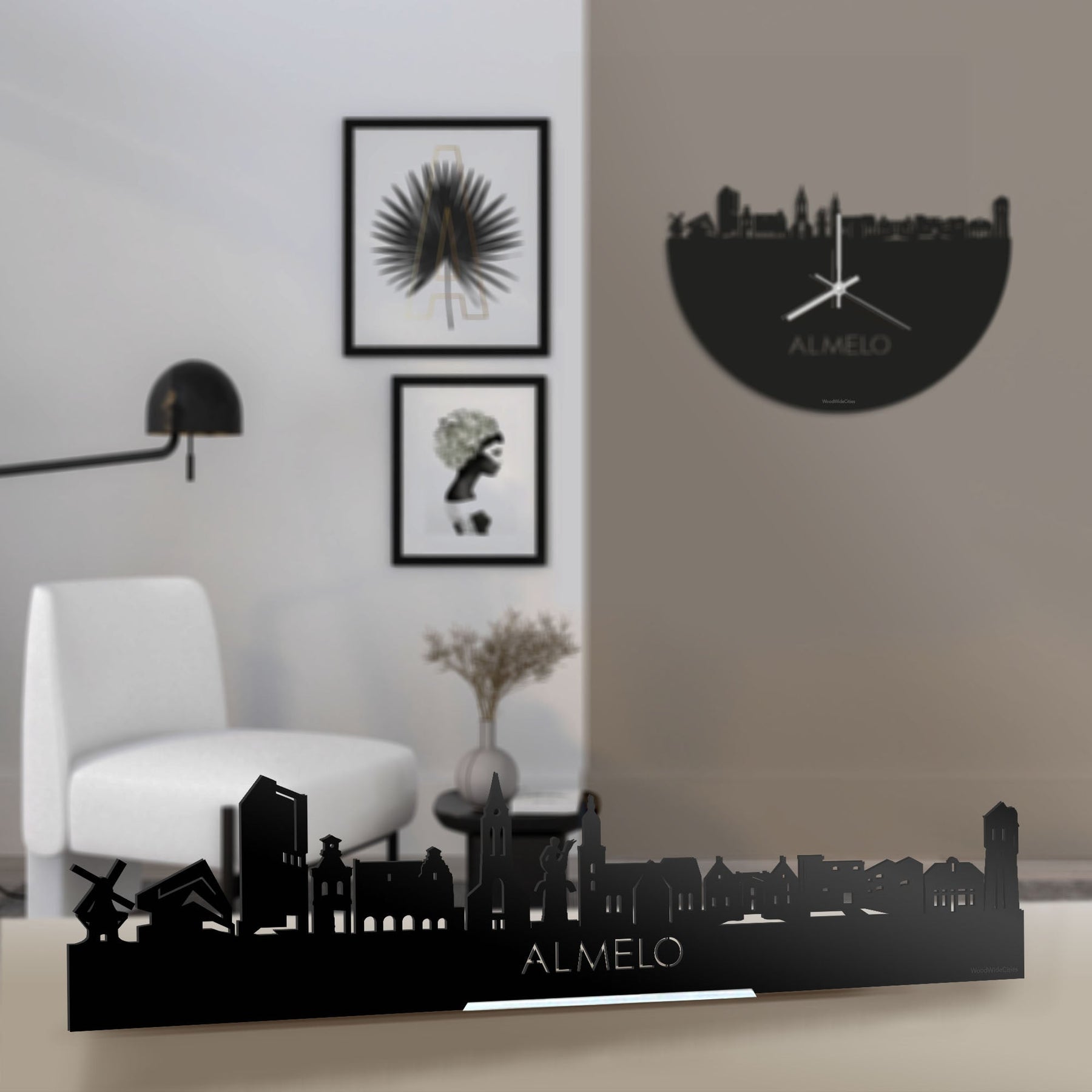 Je herkent ze vast allemaal, de hoogtepunten van deze mooie plaats. De skyline is gemaakt in samenwerking met locals uit Almelo. Je ziet Korenmolen de Hoop, De Groundscraper, Javatoren, Kunst-Torentje, Voormalig Waaggebouw, Sint-Georgiusbasiliek, Jongetje op gans, Grote Kerk Almelo, Huize Almelo, Theaterhotel Almelo, Bolletje Winkel en De Betonnen Watertoren.