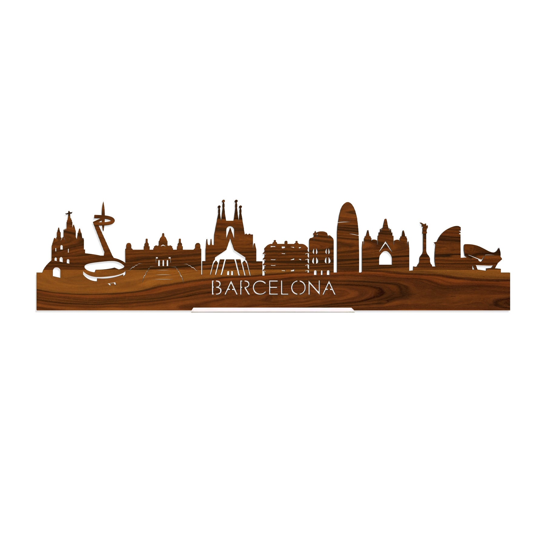 Standing Skyline Barcelona Palissander houten cadeau decoratie relatiegeschenk van WoodWideCities