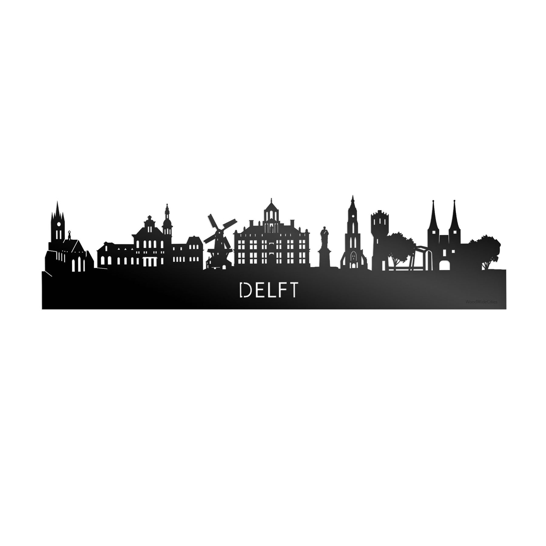 Skyline Delft Zwart Glanzend houten cadeau decoratie relatiegeschenk van WoodWideCities
