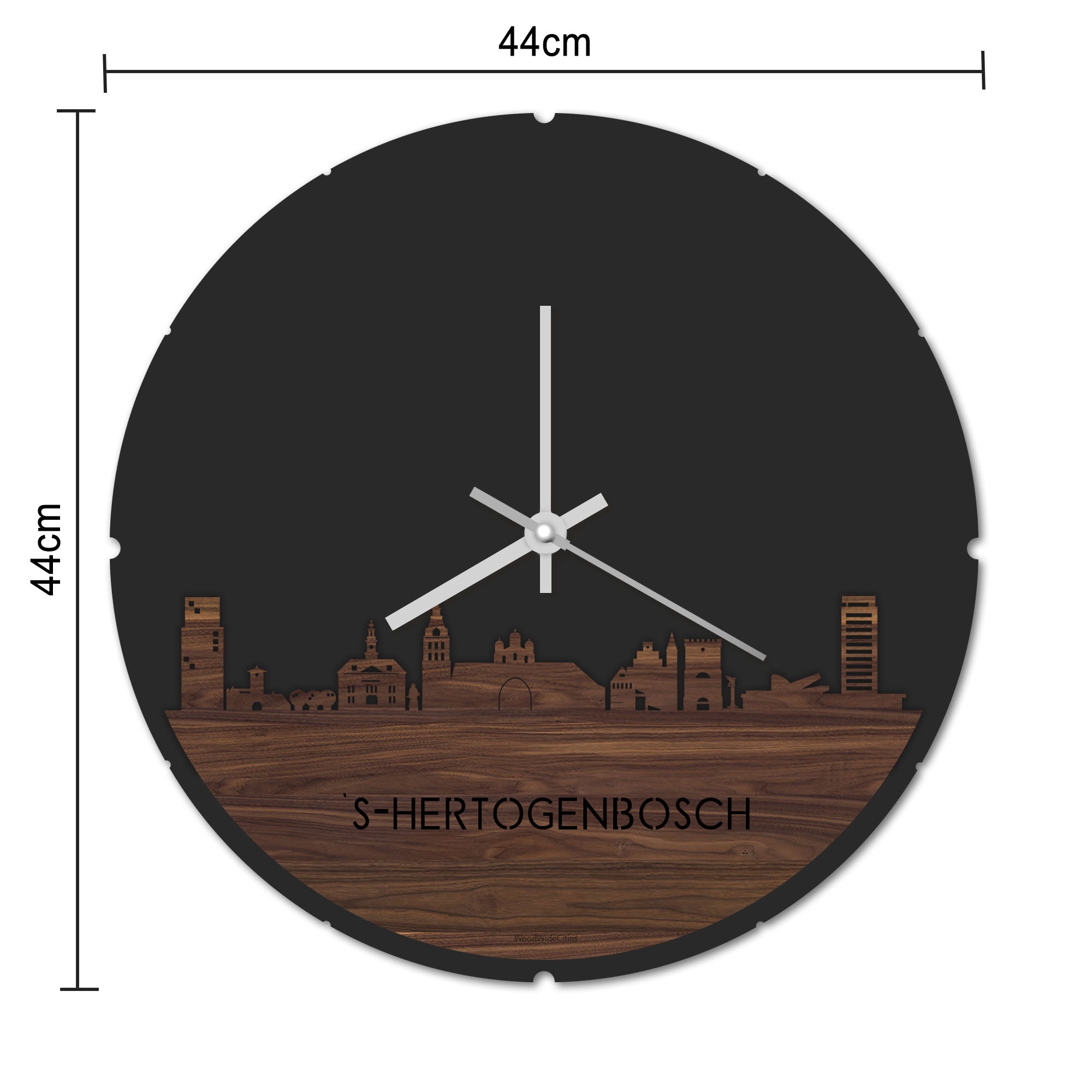 Skyline Klok Rond Den Bosch Palissander houten cadeau decoratie relatiegeschenk van WoodWideCities