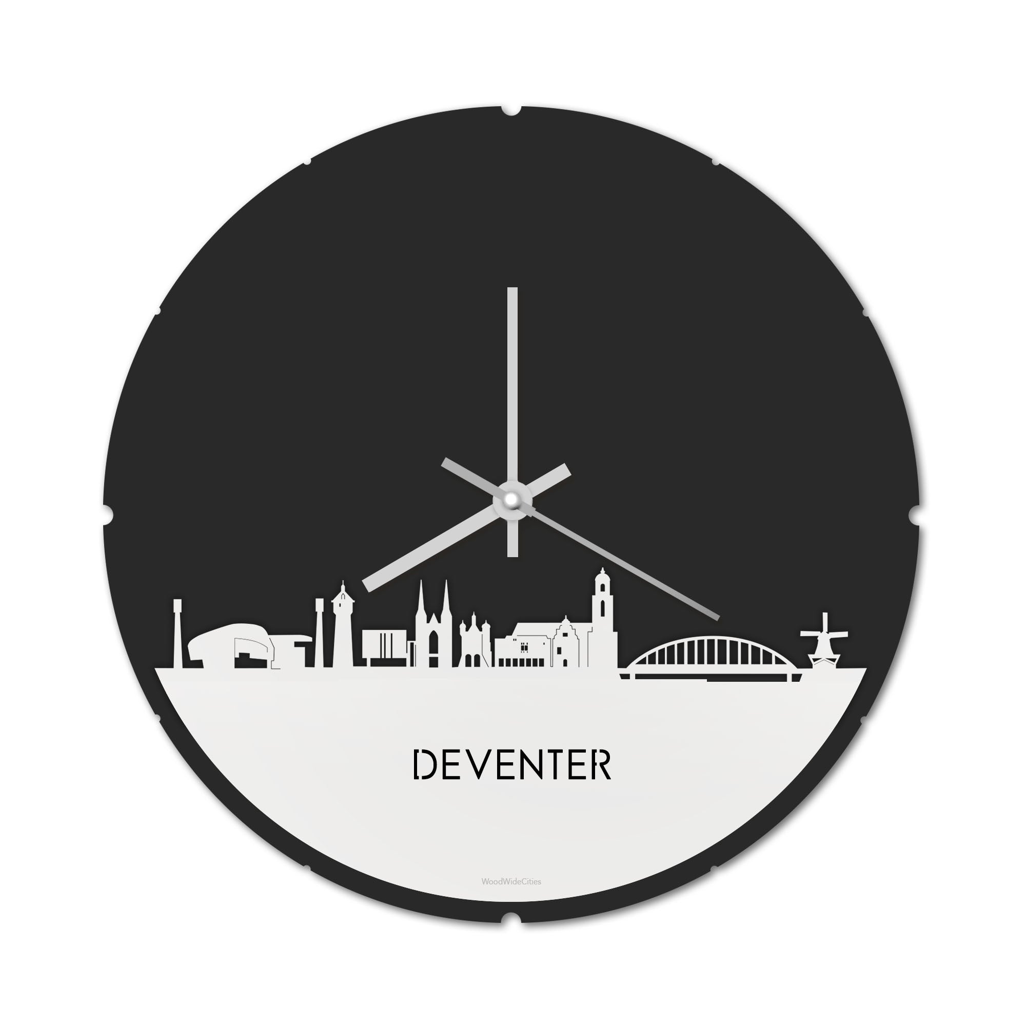 Skyline Klok Rond Deventer Wit Glanzend houten cadeau decoratie relatiegeschenk van WoodWideCities