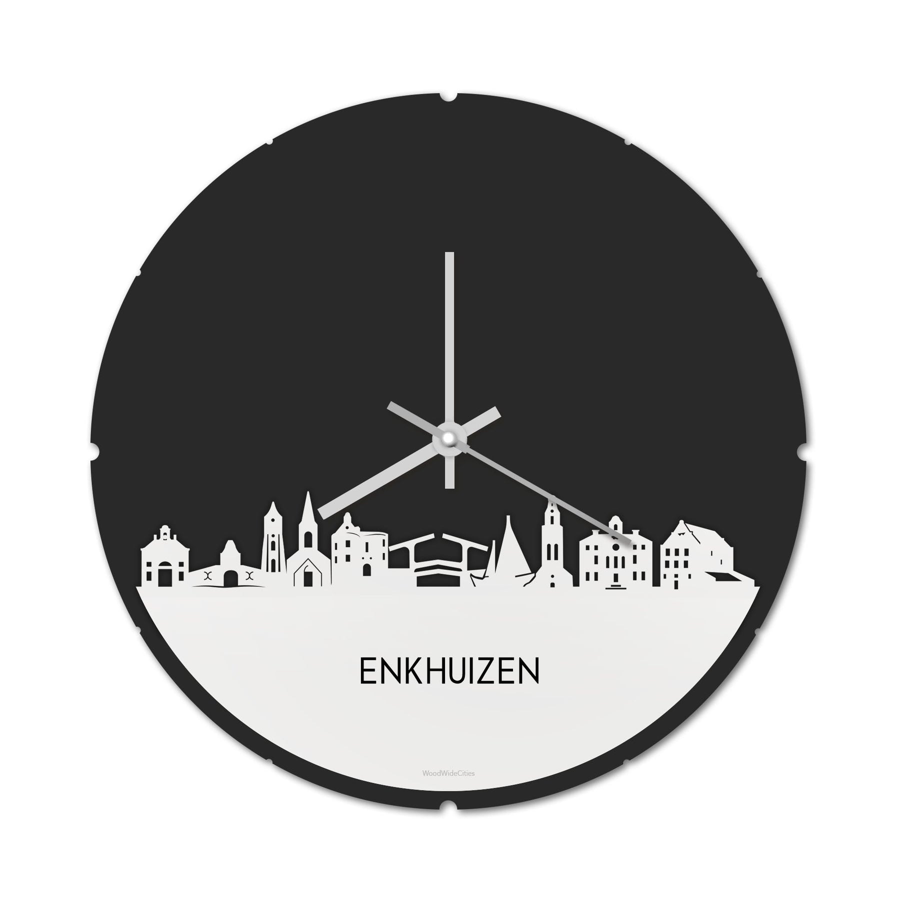 Skyline Klok Rond Enkhuizen Wit Glanzend houten cadeau decoratie relatiegeschenk van WoodWideCities