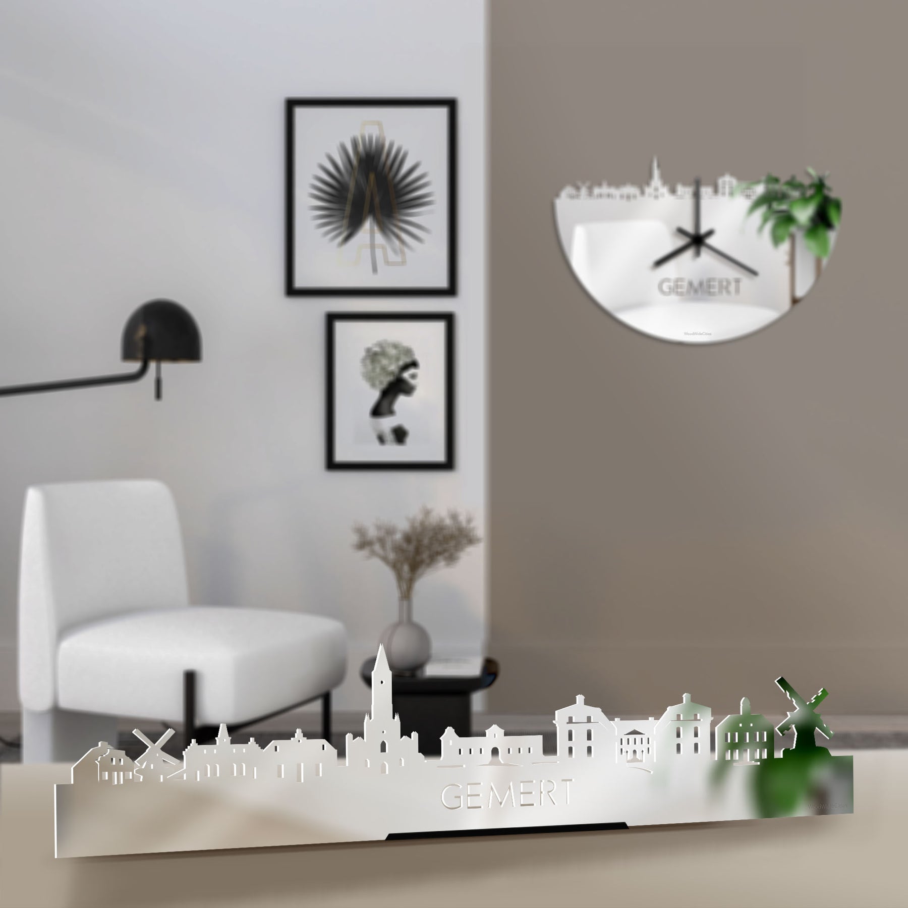 Je herkent ze vast allemaal; de hoogtepunten van deze geliefde plaats: Boerenbondsmuseum, Molen De Bijenkorf, Latijnse School, Sint-Jans Onthoofdingkerk, Kasteel Gemert, Gemeentehuis Gemert-Bakel, Molen De Volksvriend. De skyline is gemaakt in samenwerking met inwoners uit Gemert en het silhouet komt uit het creatieve brein van onze eigen kunstenares. Met liefde gemaakt!