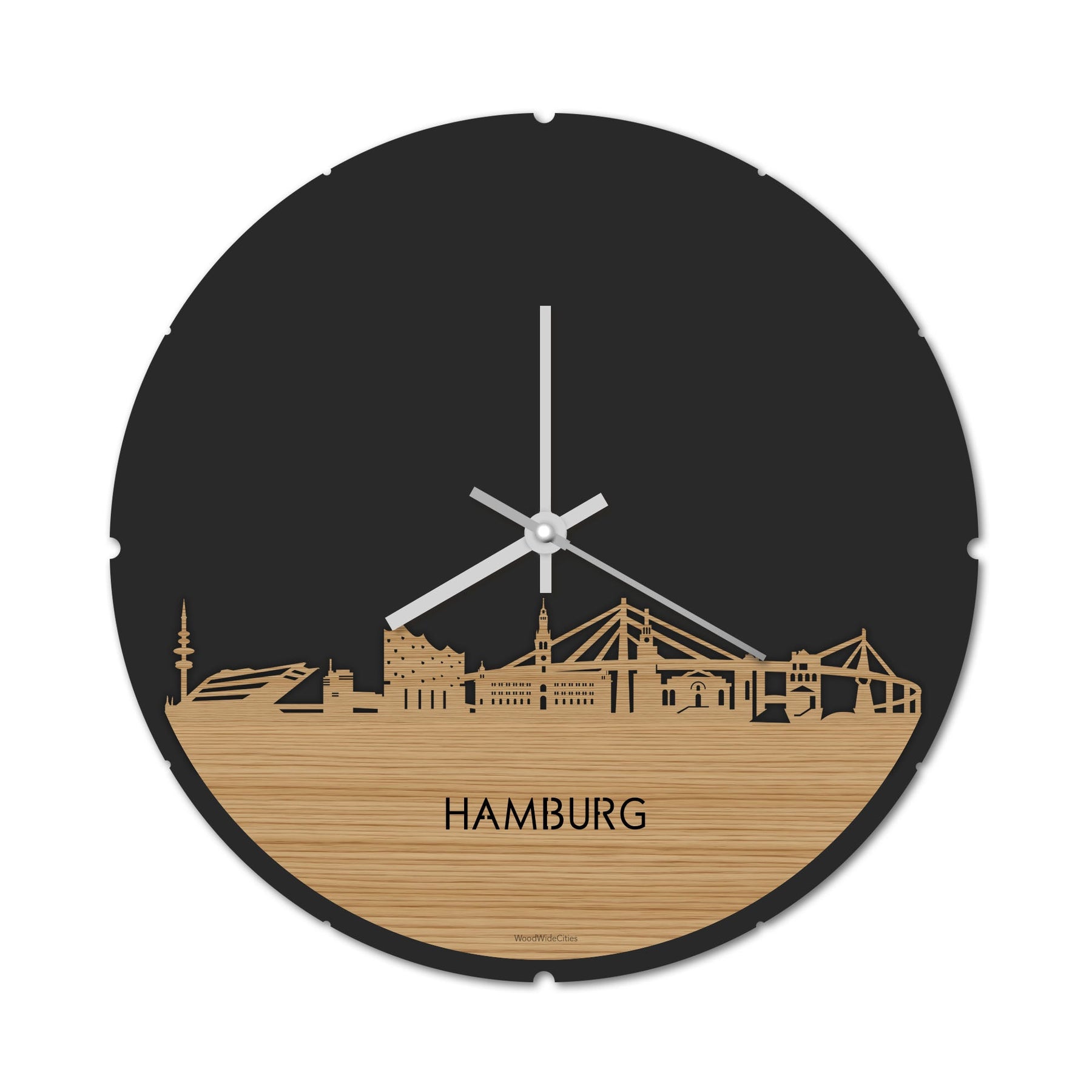 Blijf bij de tijd met de ronde skyline wandklok Dat geldt dubbelop als je deze multifunctionele houten wandklok van WoodWideCities in huis haalt. Deze klok met afbeelding van de skyline van Hamburg houdt je bij de tijd, maar neemt je ook mee terug naar de stad waar je bent geboren of waar je hebt gestudeerd. Een mooie herinnering, elke keer als je kijkt hoe laat het is! Of wat dacht je van een afscheidscadeau, een tijdloos geschenk voor moeder- of vaderdag en andere mijlpalen zoals trouwerijen, het behalen van diploma’s en het openen van een nieuw kantoor of bedrijf, een spetterende binnenkomer voor je kind die gaat studeren in een andere stad of een ideaal cadeau voor de housewarming van kennissen en vrienden.