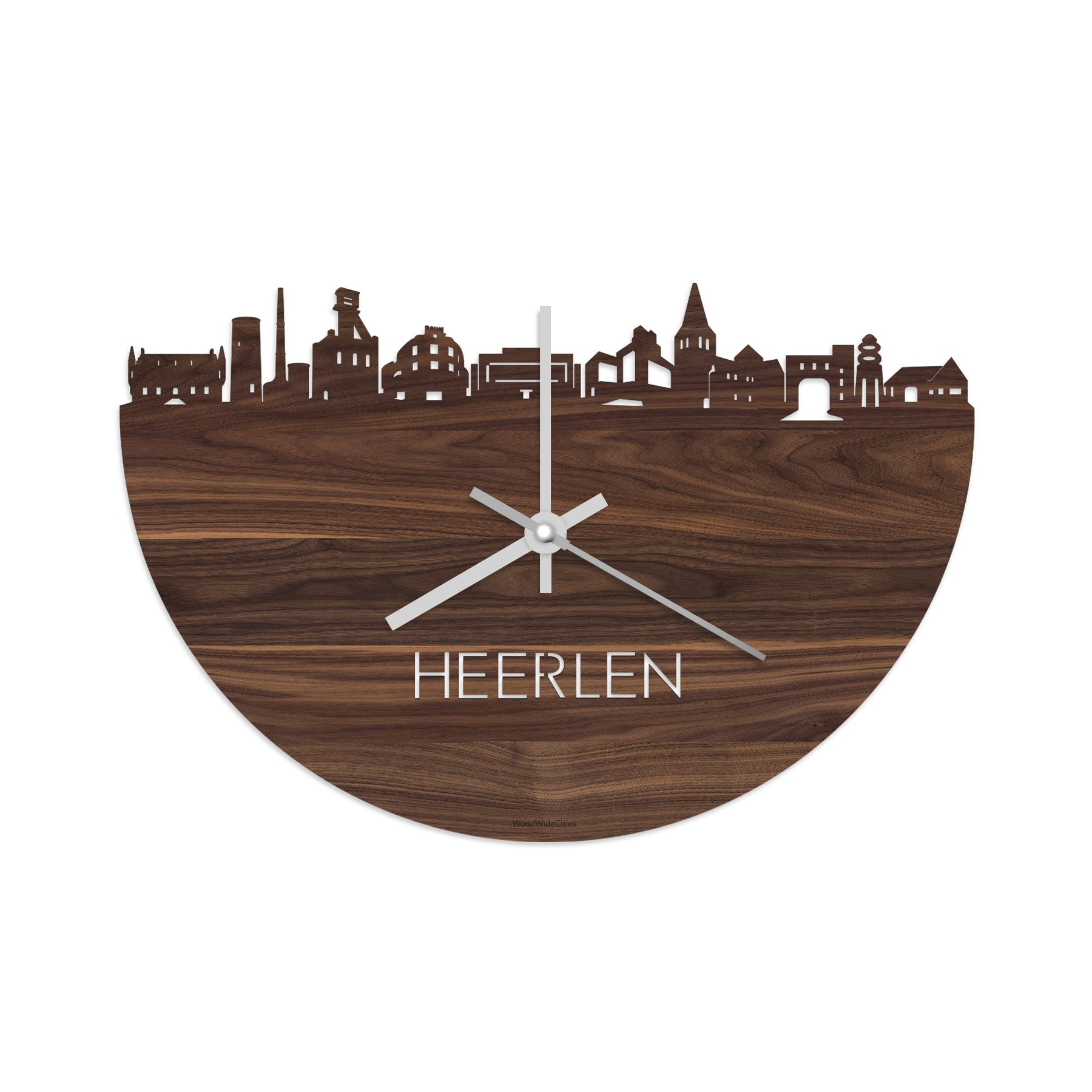 Skyline Klok Heerlen Noten houten cadeau wanddecoratie relatiegeschenk van WoodWideCities