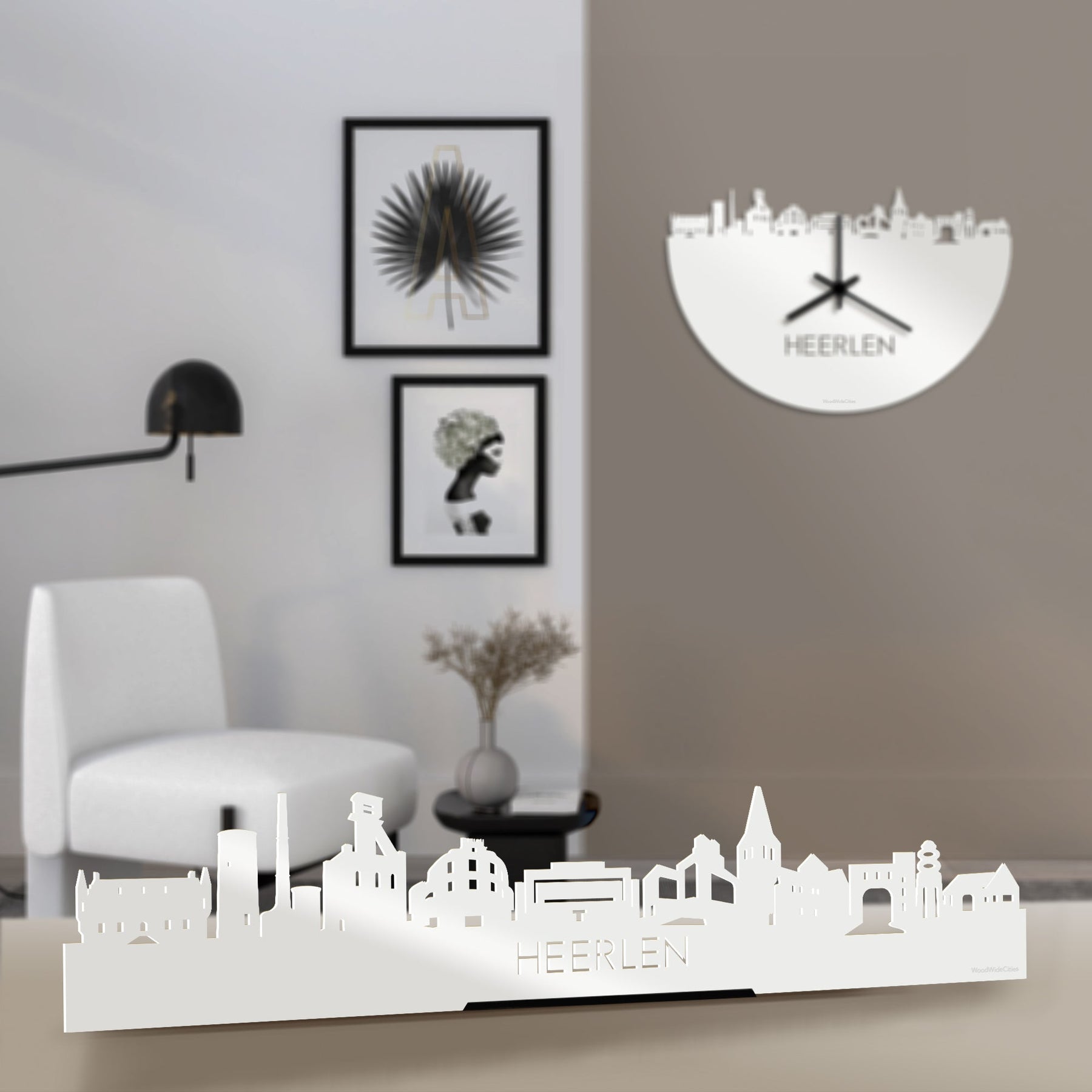 Standing Skyline Heerlen Wit Glanzend houten cadeau decoratie relatiegeschenk van WoodWideCities