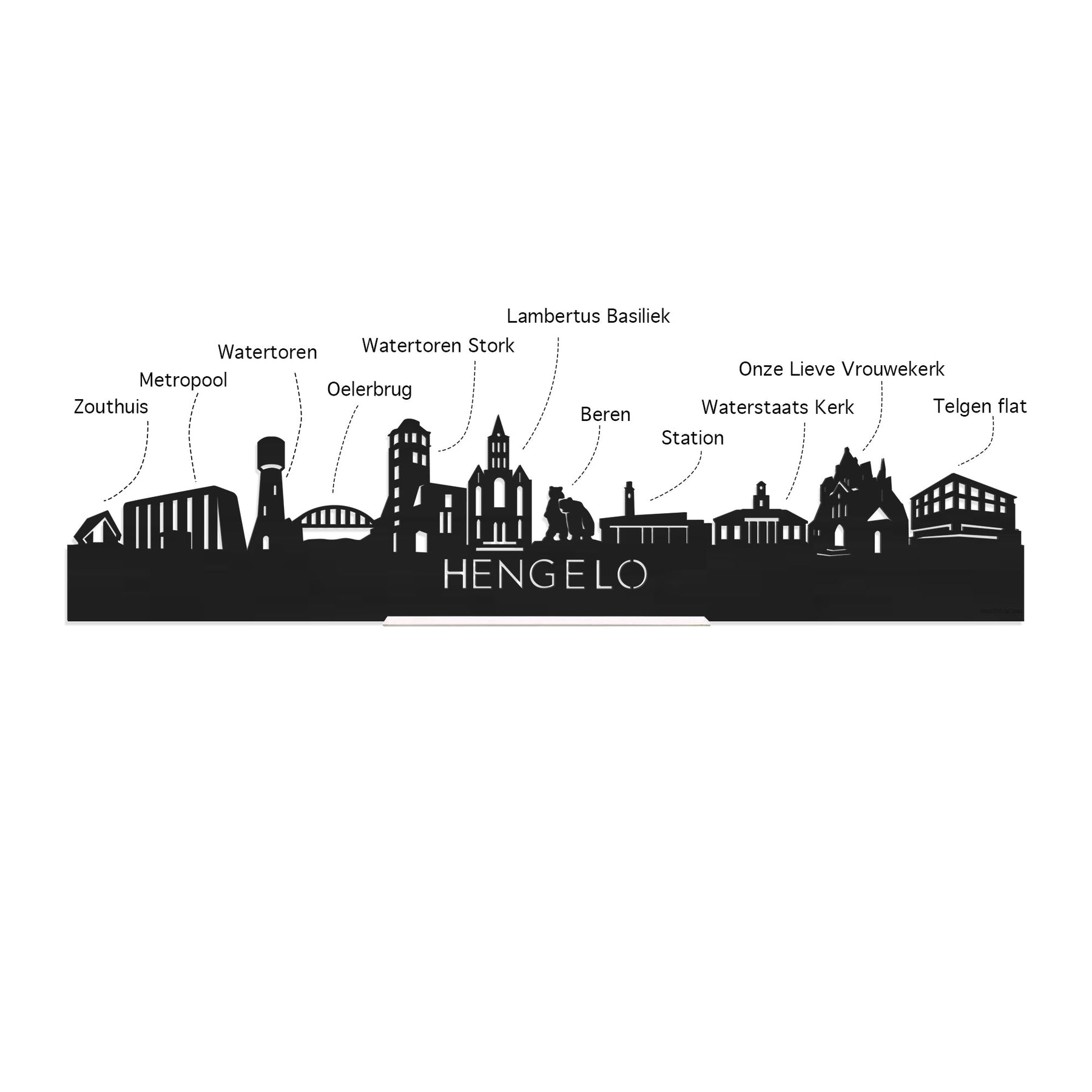 You probably recognize them all; the highlights of this beloved place: Zouthuis, Metropolis Hengelo, Watertoren Hengelo, Oelerbrug, Stork, Lambertus Basilica, Bronze Bears Hengelo, Station Hengelo, Waterstaats Kerk, Onze Lieve Vrouwenkerk Hengelo and the Telgen Flat. The skyline was created in collaboration with Hengelo entrepreneurs and the silhouette comes from the creative brain of an architect, so all proportions are correct.