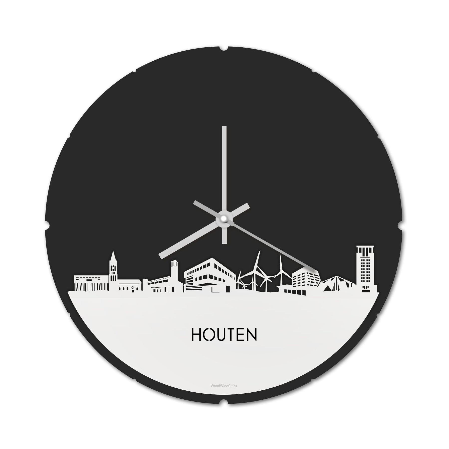 Blijf bij de tijd met de ronde skyline wandklok Dat geldt zeker als je de ronde skyline wandklok gemaakt van 100% gerecycled kunststof (plastic) in huis haalt. Deze skyline klok van Houten houdt je bij de tijd, maar neemt je ook mee terug naar de stad waar je bent opgegroeid of waar je hebt gestudeerd. Een mooie herinnering, elke keer als je kijkt hoe laat het is! Of wat dacht je van een afscheidscadeau, een tijdloos geschenk voor Moeder- of Vaderdag en andere mijlpalen zoals jubilea, trouwerijen, het behalen van diploma’s, het openen van een nieuw kantoor of gewoon voor jezelf. Een bijzondere verrassing voor je kind die gaat studeren in een andere stad of een ideaal cadeau voor de housewarming van kennissen en vrienden.