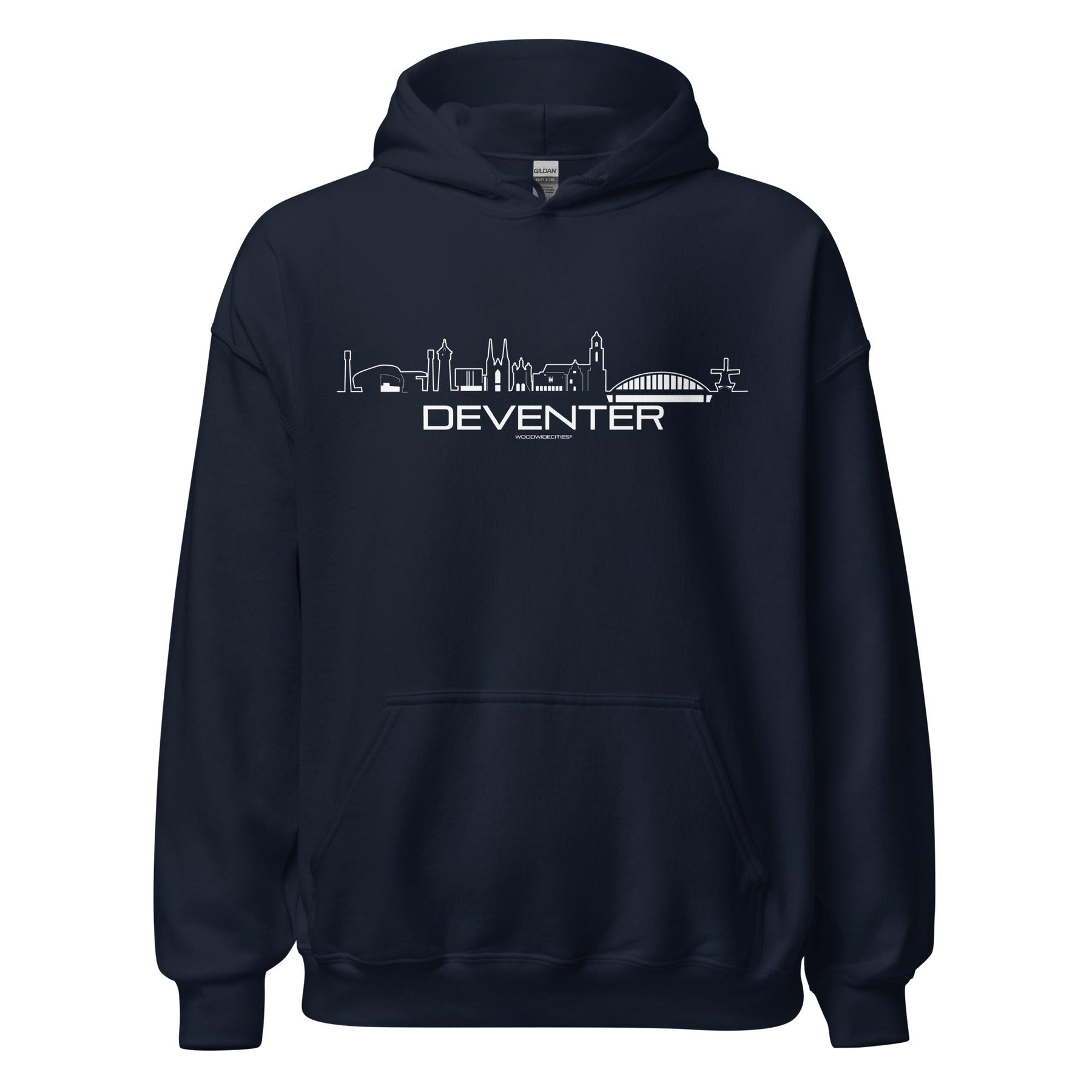 Hoodie Deventer Navy S houten cadeau decoratie relatiegeschenk van WoodWideCities