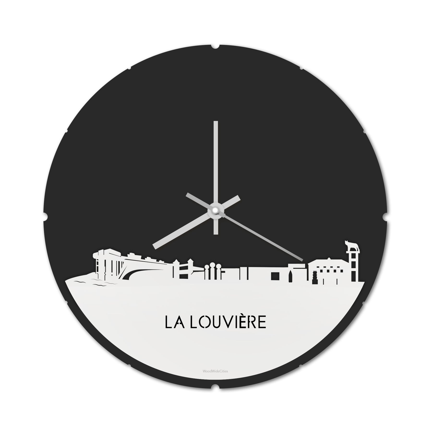 Skyline Klok Rond La Louvière Wit glanzend gerecycled kunststof cadeau decoratie relatiegeschenk van WoodWideCities