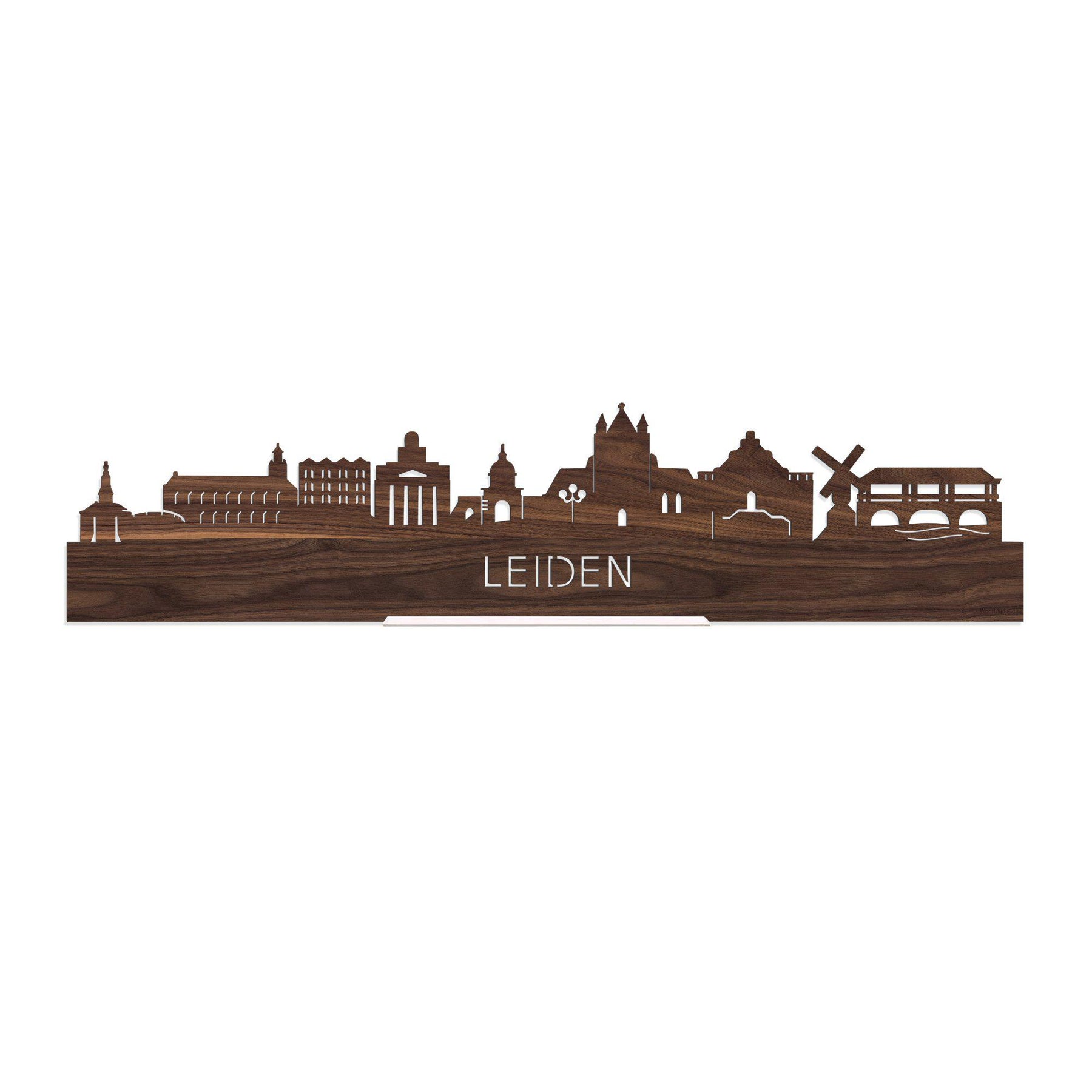 You probably recognize them all; the highlights of this beloved place:Zijlpoort, Burcht, Leiden Academy Building, Cloth Hall, Hartebrugkerk, Morspoort, Pieterskerk, Leiden City Hall, Molen De Put and Koornbeursbrug. The skyline was created in collaboration with Leiden entrepreneurs and the silhouette comes from the creative brain of an architect, so all proportions are correct.
