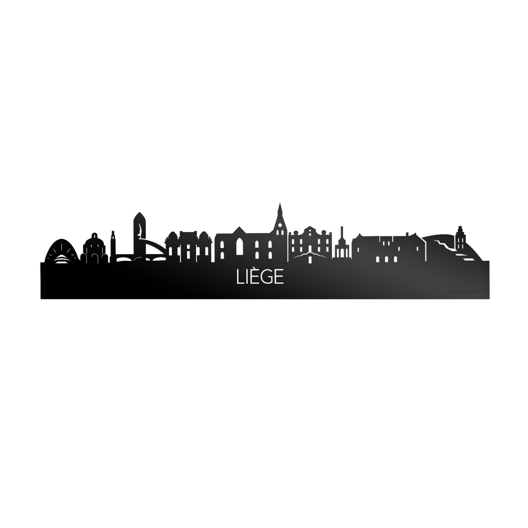 Skyline Liège Zwart Glanzend houten cadeau decoratie relatiegeschenk van WoodWideCities