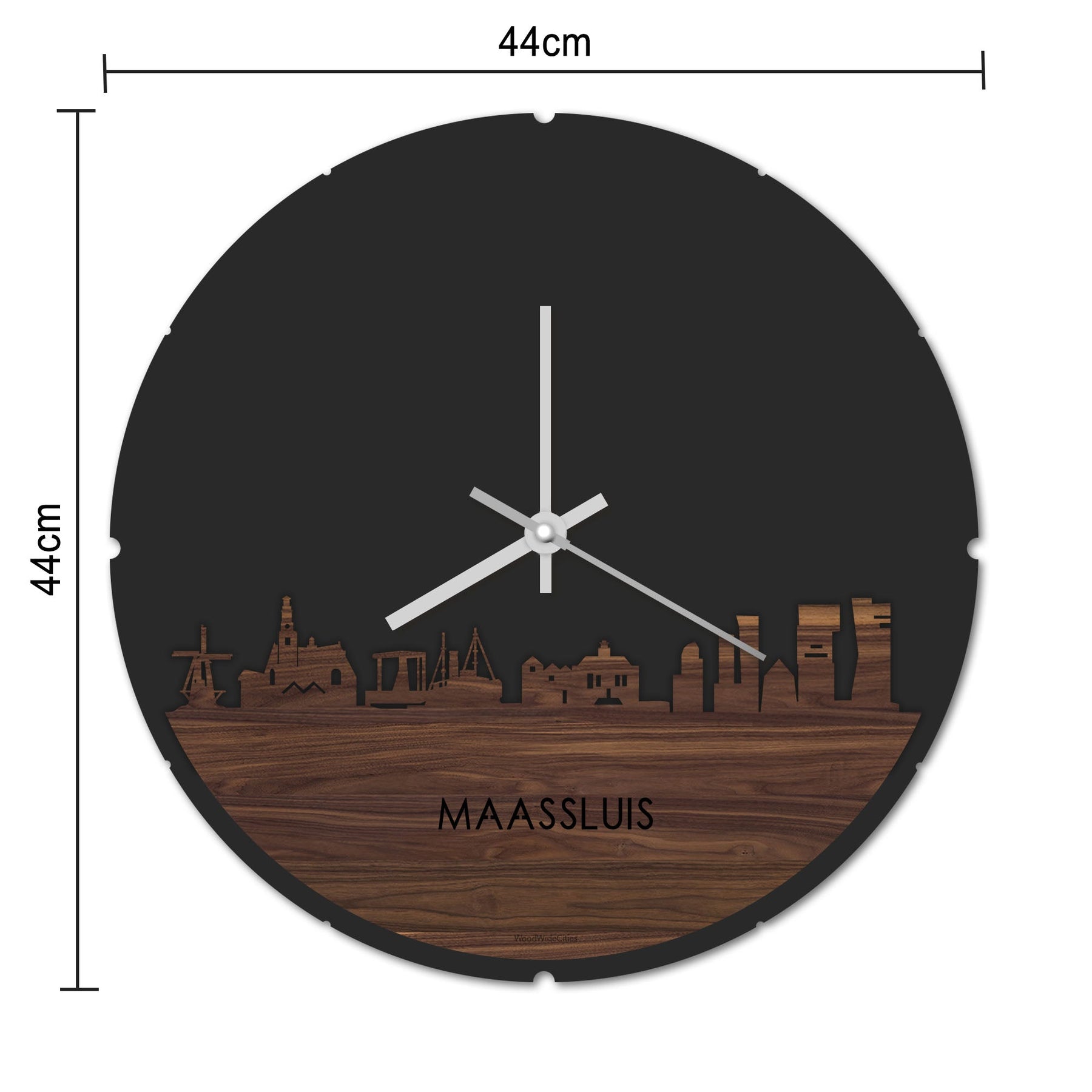 Blijf bij de tijd met de ronde skyline wandklok Dat geldt dubbelop als je deze multifunctionele houten wandklok van WoodWideCities in huis haalt. Deze klok met afbeelding van de skyline van Maassluis houdt je bij de tijd, maar neemt je ook mee terug naar de stad waar je bent geboren of waar je hebt gestudeerd. Een mooie herinnering, elke keer als je kijkt hoe laat het is! Of wat dacht je van een afscheidscadeau, een tijdloos geschenk voor moeder- of vaderdag en andere mijlpalen zoals trouwerijen, het behalen van diploma’s en het openen van een nieuw kantoor of bedrijf, een spetterende binnenkomer voor je kind die gaat studeren in een andere stad of een ideaal cadeau voor de housewarming van kennissen en vrienden.