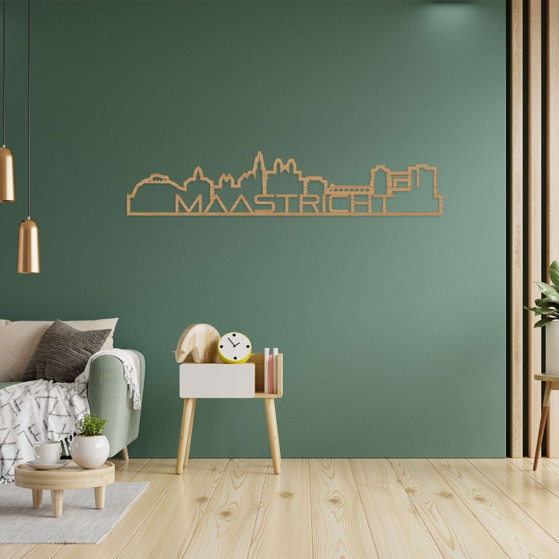 De skyline van Maastricht is verkrijgbaar in verschillende soorten hout: bamboe, zwart MDF, eiken, noten en palissander. De houtsoorten zijn duurzaam, ecologisch en gekeurd. Dat vinden wij belangrijk! Bij het produceren van houten decoraties komen geen schadelijke stoffen vrij, het hout gaat langer mee en het is biologisch afbreekbaar. Daarnaast is de houten afwerking bij elke skyline anders. Dat maakt jouw skyline uniek! Je eigen stukje kunst aan de muur.