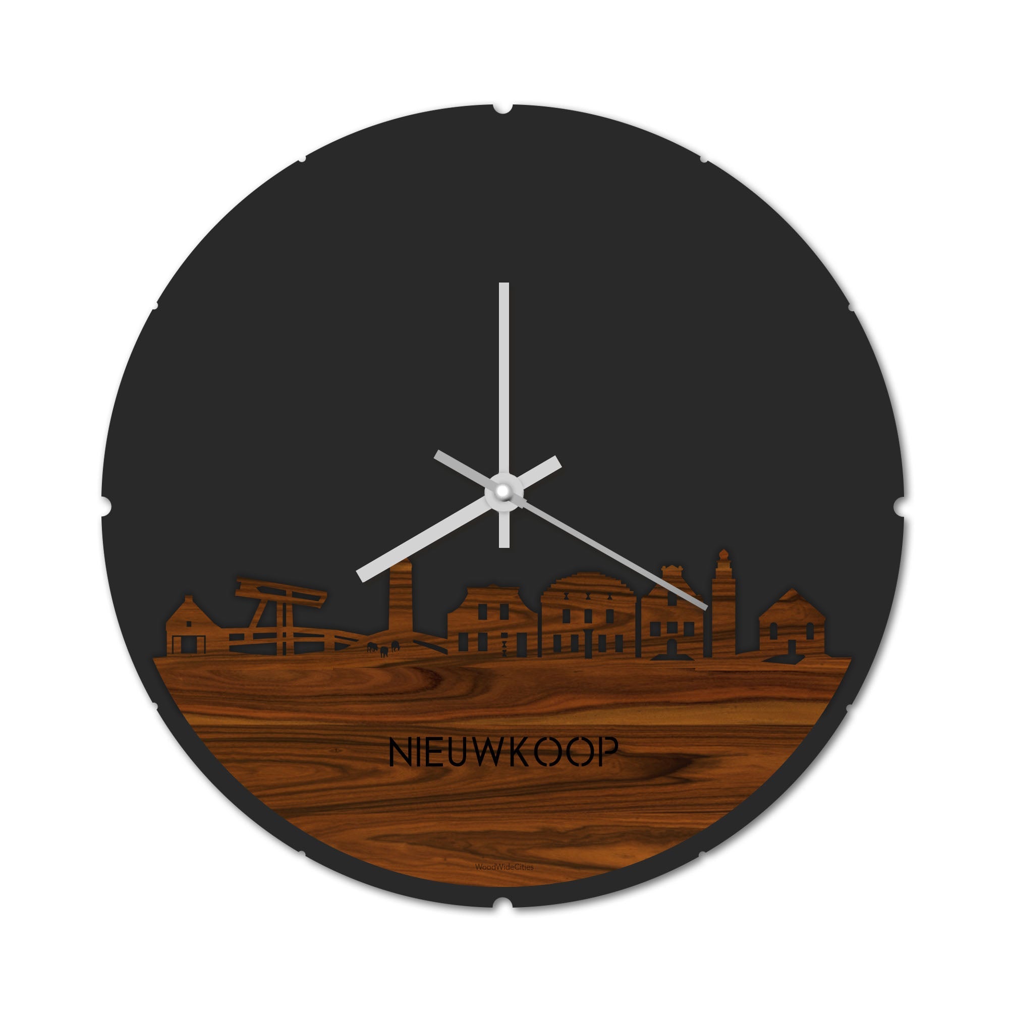 Skyline Klok Rond Nieuwkoop Palissander houten cadeau decoratie relatiegeschenk van WoodWideCities