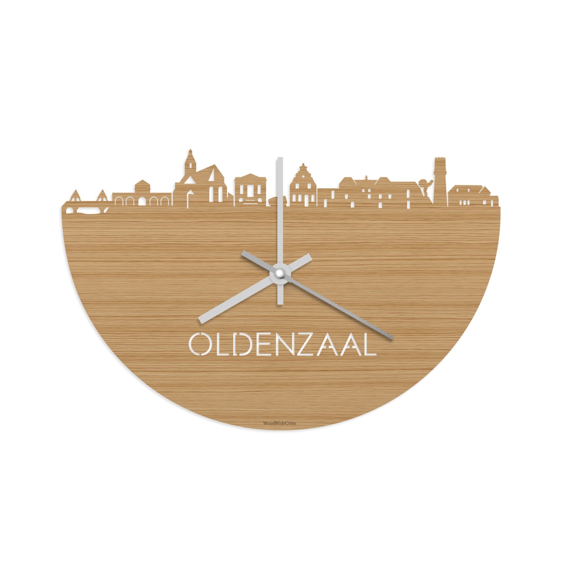 Time flies when you’re having fun! Dat geldt dubbelop als je deze multifunctionele houten wandklok van WoodWideCities in huis haalt. Deze klok met afbeelding van de skyline van Oldenzaal houdt je bij de tijd, maar neemt je ook mee terug naar de stad waar je bent geboren of waar je hebt gestudeerd. Een mooie herinnering, elke keer als je kijkt hoe laat het is! Of wat dacht je van een afscheidscadeau, een tijdloos geschenk voor moeder- of vaderdag en andere mijlpalen zoals trouwerijen, het behalen van diploma’s en het openen van een nieuw kantoor of bedrijf, een spetterende binnenkomer voor je kind die gaat studeren in een andere stad of een ideaal cadeau voor de housewarming van kennissen en vrienden.